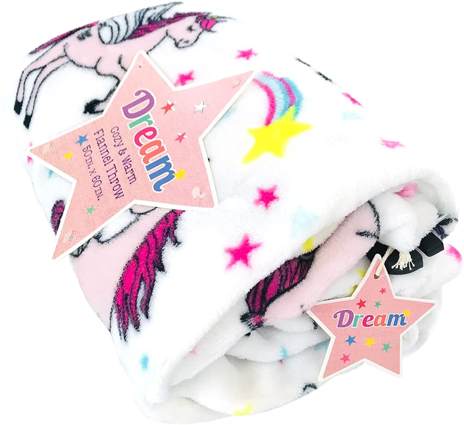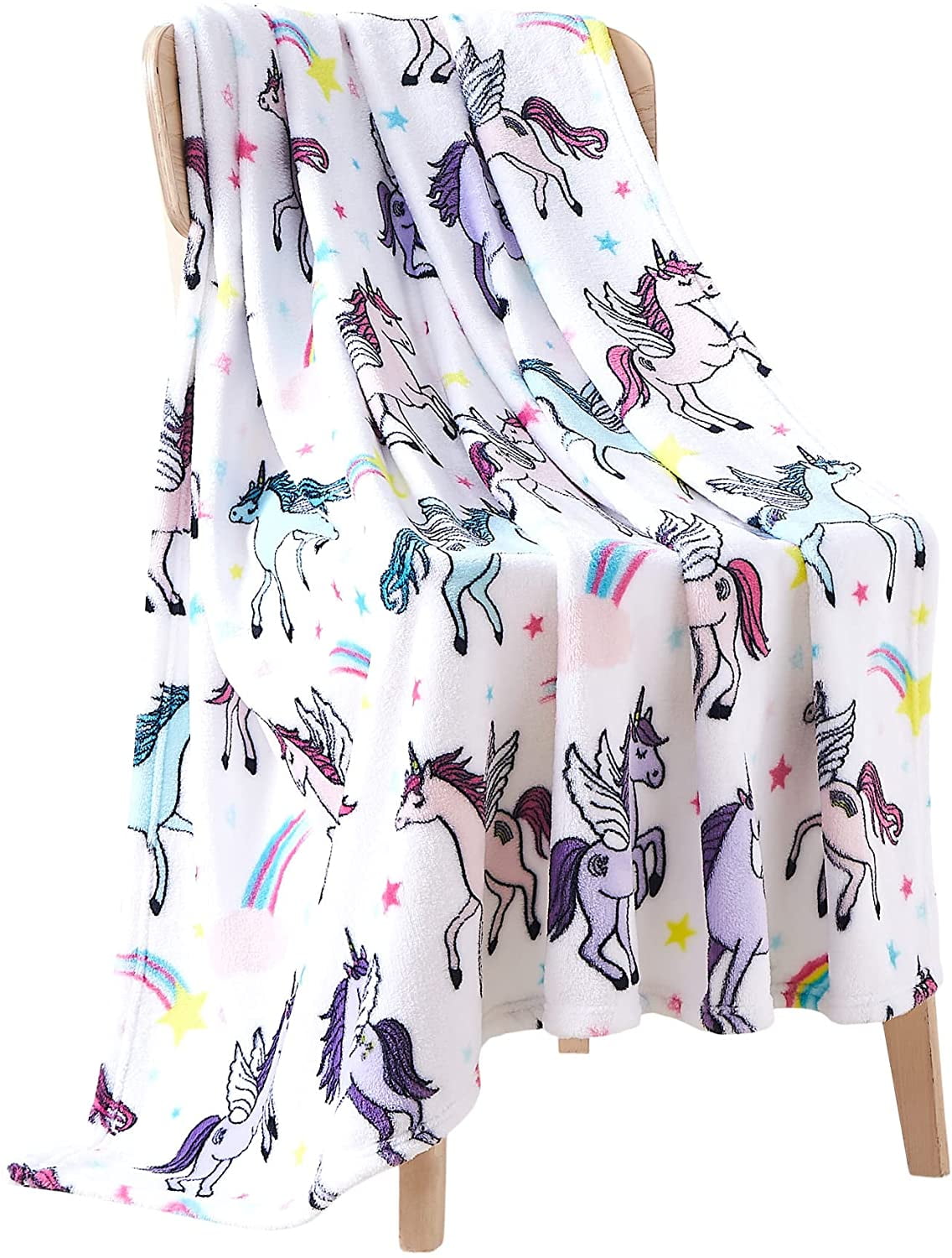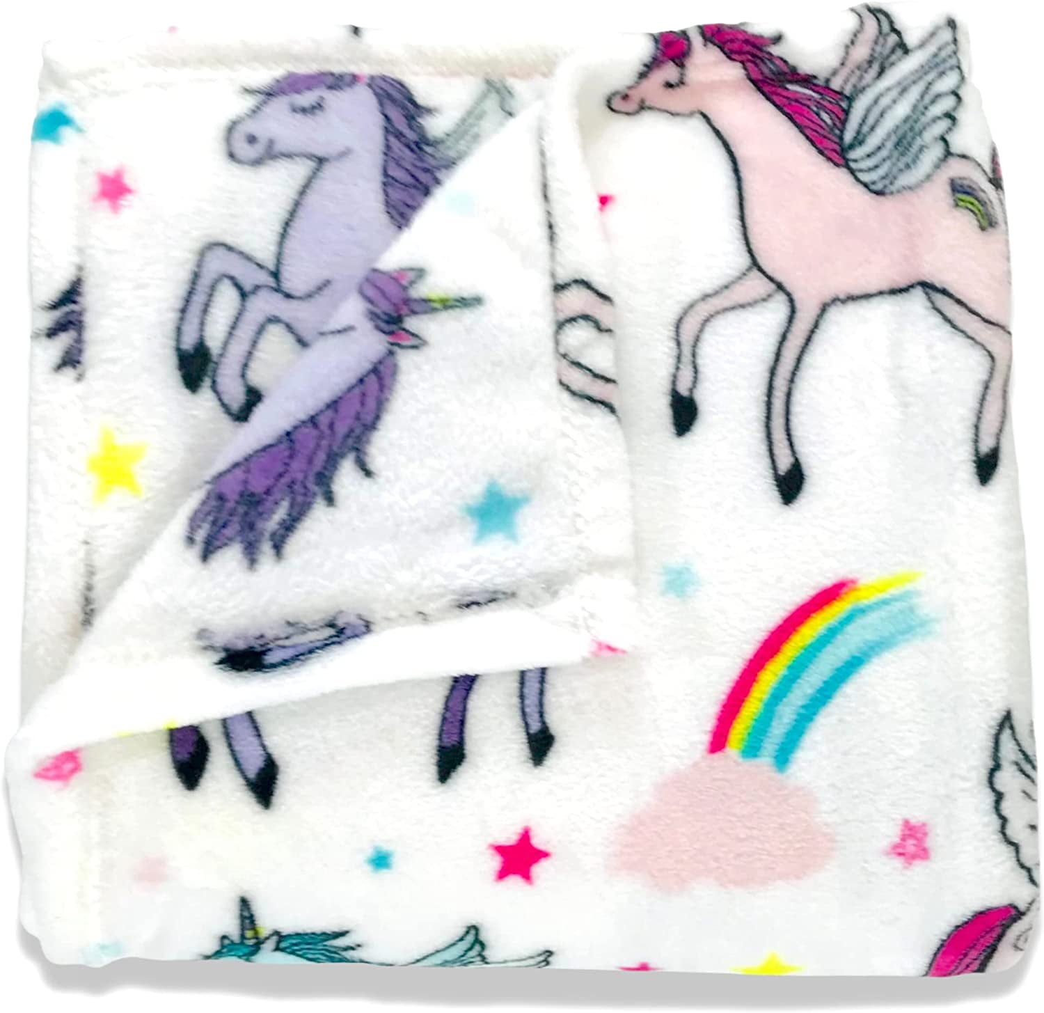 COMFY AND WARM: For Yourself or Your Loved One with Decorative Luxurious Fun Theme Throw Blanket for kids (and adults!) or for your sofa, couch, chair, or bed. Adorable plush white unicorn throw blanket with stars and rainbows. Perfect addition to any child’s bedroom, playroom, and living room.