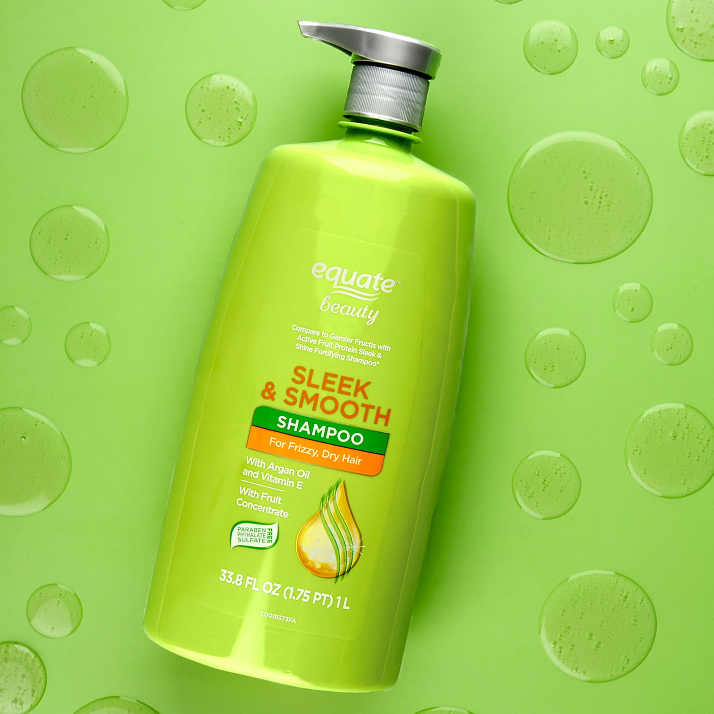 Frizzy, dry hair is a thing of the past when you start using Equate Beauty Sleek & Smooth Shampoo. Each bottle of our sleek and smooth shampoo is infused with argan oil, which is filled with nutrient-rich vitamin E. Vitamin E provides a fatty, protective layer to your hair and scalp, which can help prevent dryness, boost shine, and eliminate frizz. To use, just add a few pumps to your palm, gently massage into your scalp until a rich lather forms, and rinse thoroughly from roots to ends; it’s that simple! For added moisture and shine, follow up with Equate Beauty Sleek & Smooth Conditioner. Level up your hair care routine with Equate Beauty Sleek & Smooth Shampoo.