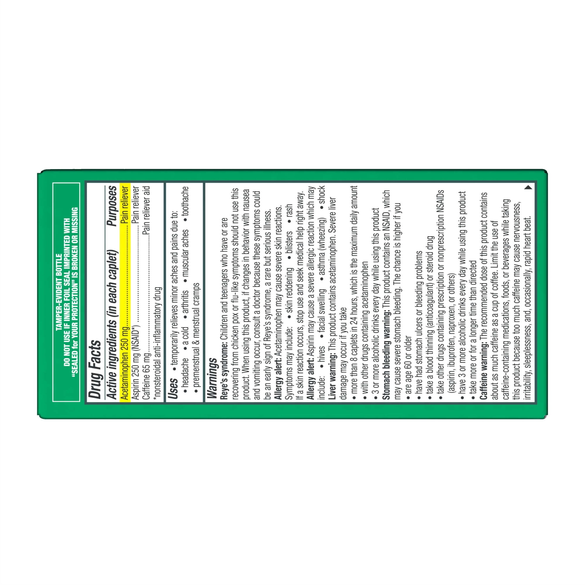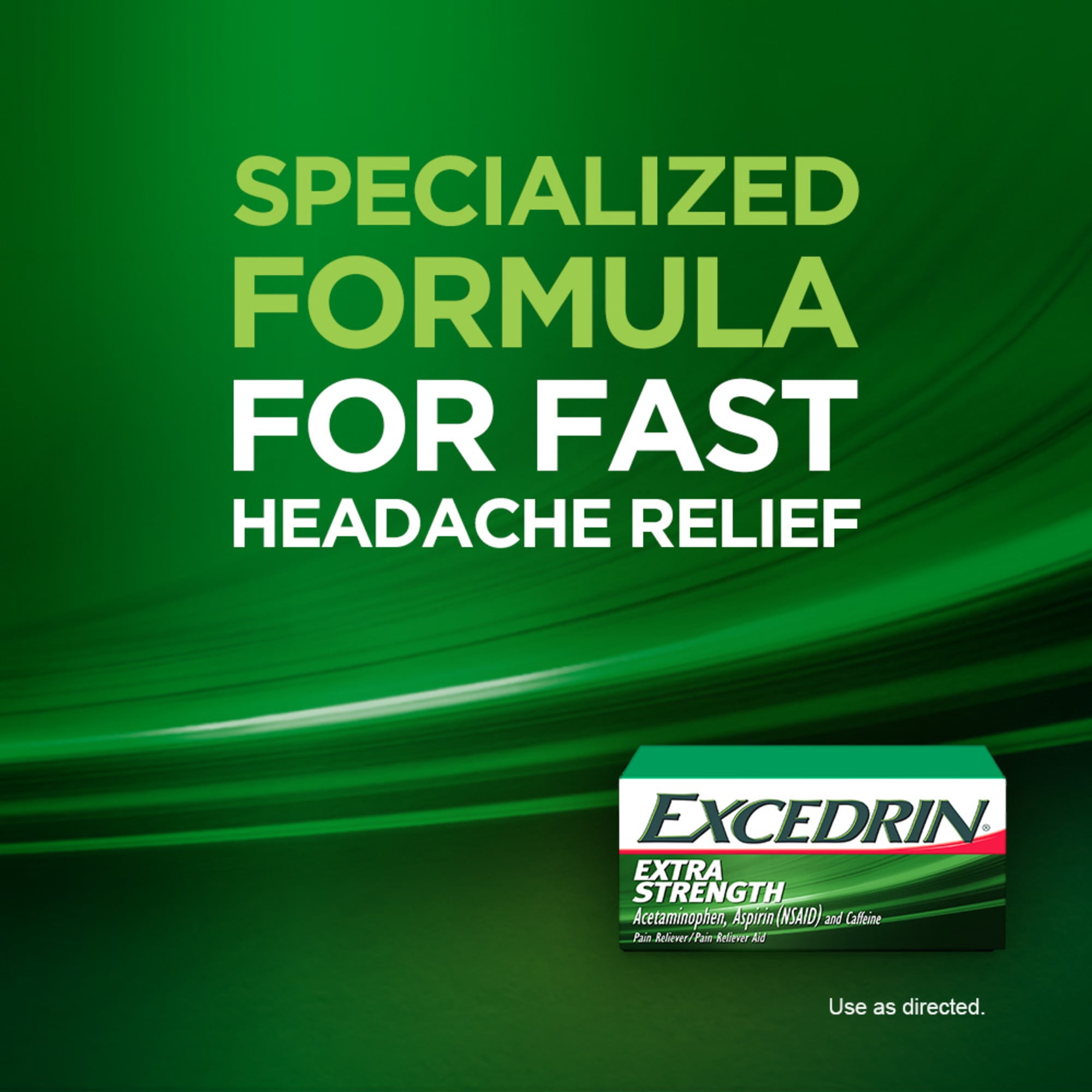 Excedrin Extra Strength Caplets are pain relievers that provide clinically proven, fast acting headache relief. These convenient Excedrin caplets work as hard as you do, combining aspirin and acetaminophen with caffeine. These active ingredients create a powerful formula with two pain fighters and a booster to offer temporary relief of pain from headaches, colds, premenstrual and menstrual cramps, arthritis, tooth pain and muscle pain. For some, headache pain relief with this Excedrin extra strength pain reliever can start in 15 minutes.