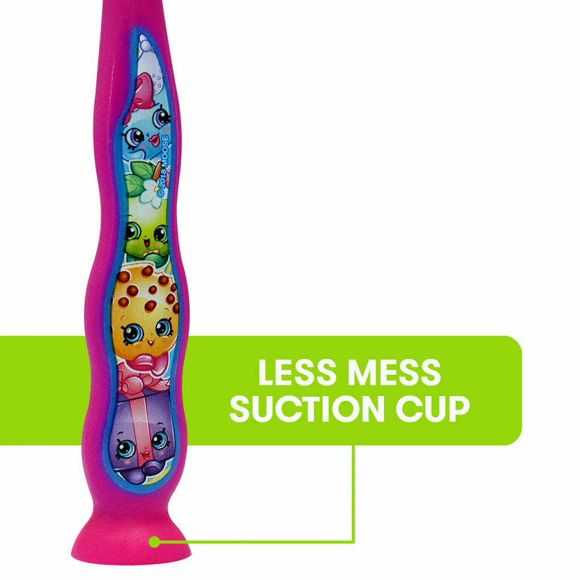 This Firefly toothbrush brushes away plaque to help prevent gum disease and tooth decay. It has premium soft bristles which gently & effectively cleans between teeth and along the gumline. It also has a fun ergonomic handle and compact head designed for a child’s mouth. It features a less mess suction cup, a soft tongue cleaner, and a fun character cap to protect the toothbrush.