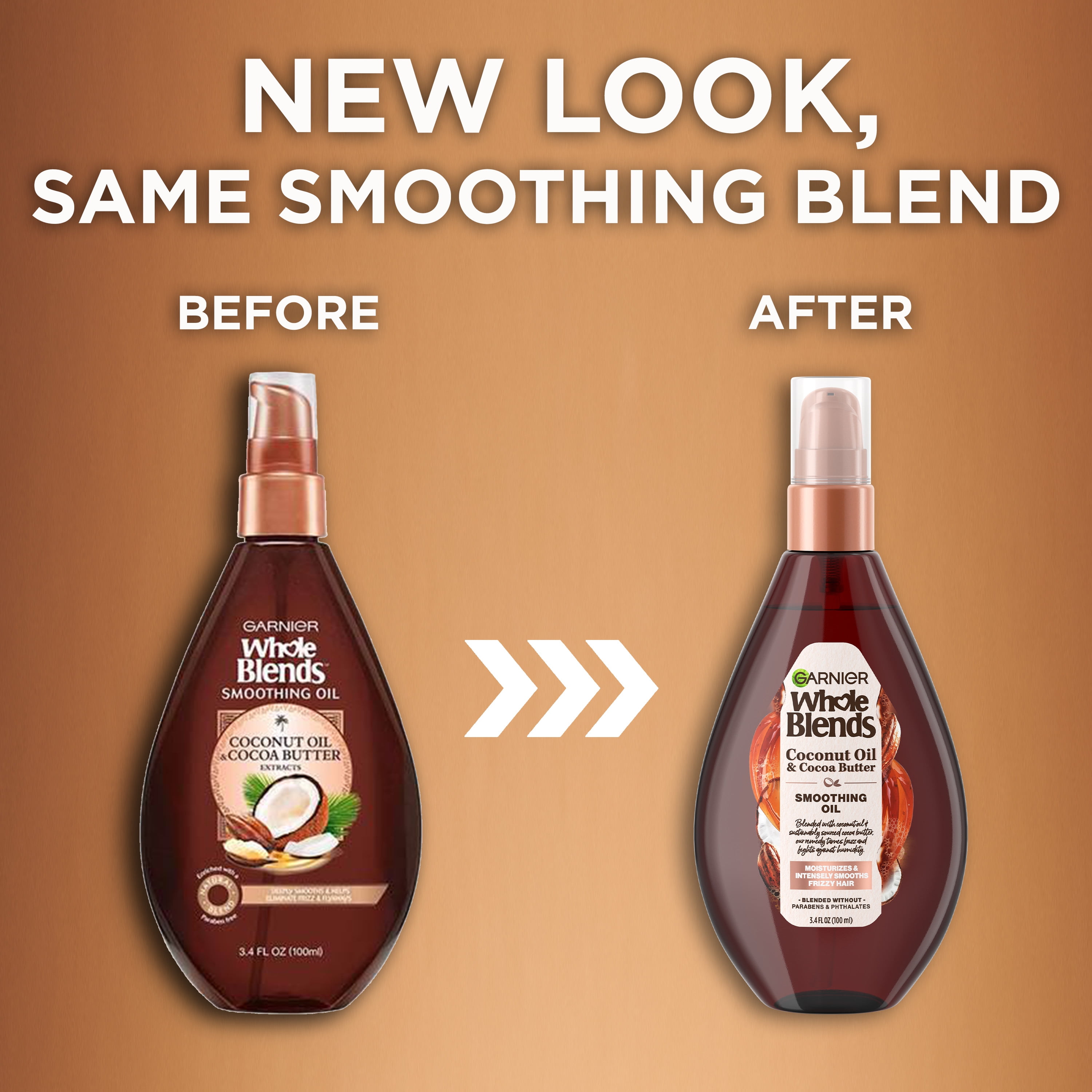 Indulge your strands with an exclusive smoothing remedy blended with Coconut Oil & Cocoa Butter that nourishes, tames undesirable frizz and fights against high humidity for up to 24HR intensely smooth hair. Our luxurious silkening hair oil treatment blooms with an exotic fragrance of Coconut Oil & Cocoa Butter. For the best smoothing and frizz taming results, use the full Whole Blends smoothing system of shampoo, conditioner, and leave in treatment. Blended without Parabens, Phthalates, and DMDM Hydantoin. All Garnier products are approved by Cruelty Free International under the Leaping Bunny Program. **Packaging May Vary