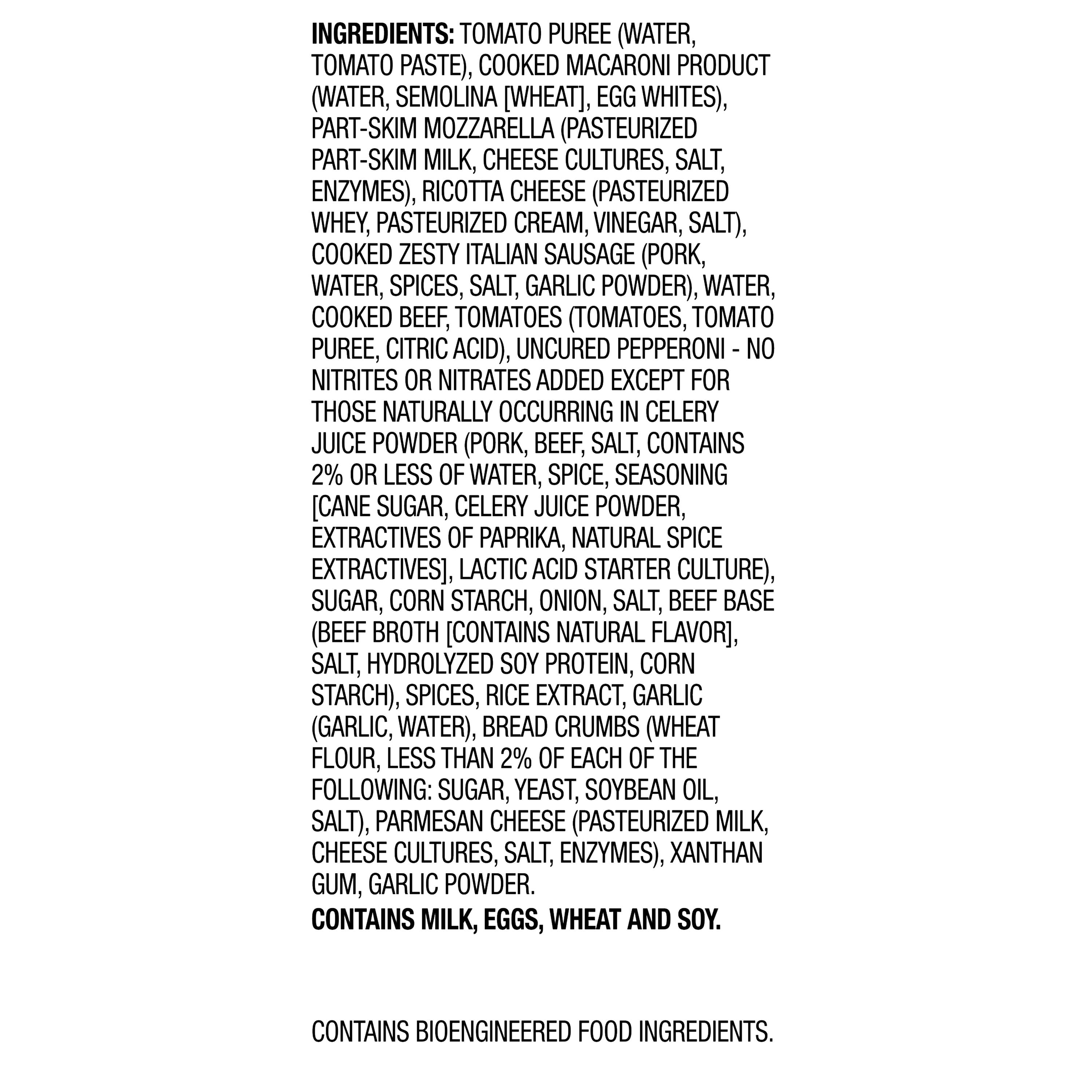 Enjoy classic Italian flavors in a convenient meal with Great Value Italian-Style Three Meat Lasagna. This delicious lasagna has three meats: Italian sausage, beef, and pepperoni which perfectly complement the Bolognese sauce. In between the layers of noodles and meats are two types of perfectly melted and gooey ricotta and mozzarella cheeses. This hearty and warm lasagna will have everyone asking if it’s homemade. Pair the lasagna with a salad, bread sticks, or some steamed vegetables for a well-rounded meal. Serve the easy to prepare meal at a potluck, party, or as dinner for your family. Choose Great Value Italian-Style Three Meat Lasagna for comforting and wholesome meal.