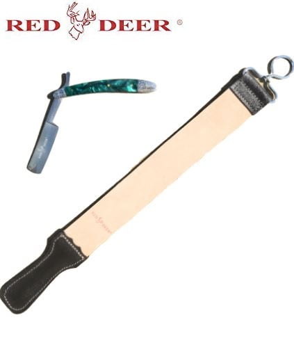 These straight razors are high quality and affordable. The Red Deer logo is engraved on the blade. When you wake up at dawn and you’re getting ready to go out on your mission, you can shave the old fashioned way, like your father used to – like a man. Red Deer Straight Razors are sharp and provide a better alternative for your skin versus today’s razors and the handles come in many vibrant colors. These straight razors also make the perfect gift. Includes Red Deer Leather Sharpening and Honing Strop. Get yours today while supplies last. You can’t go wrong with Red Deer- superb quality since 1996.Green Pearl Red Deer Shaving Barber Vintage Straight Razor With Red Deer Leather Strop