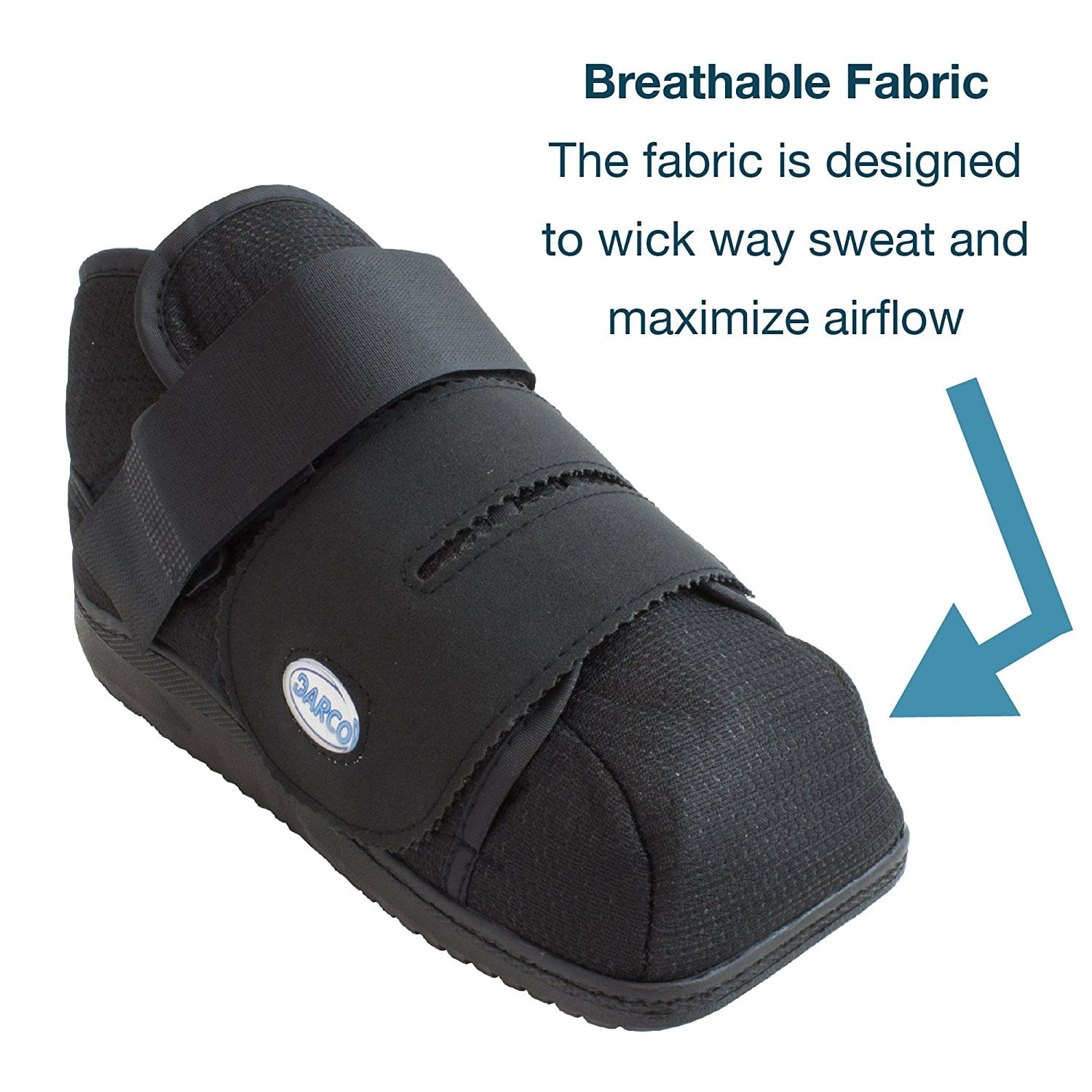 1444B Size: Small Features: -All season closed toe protection.-Deep opening allows for bulky post – op dressings and most fiberglass casts. Color/Finish: -Color: Black.