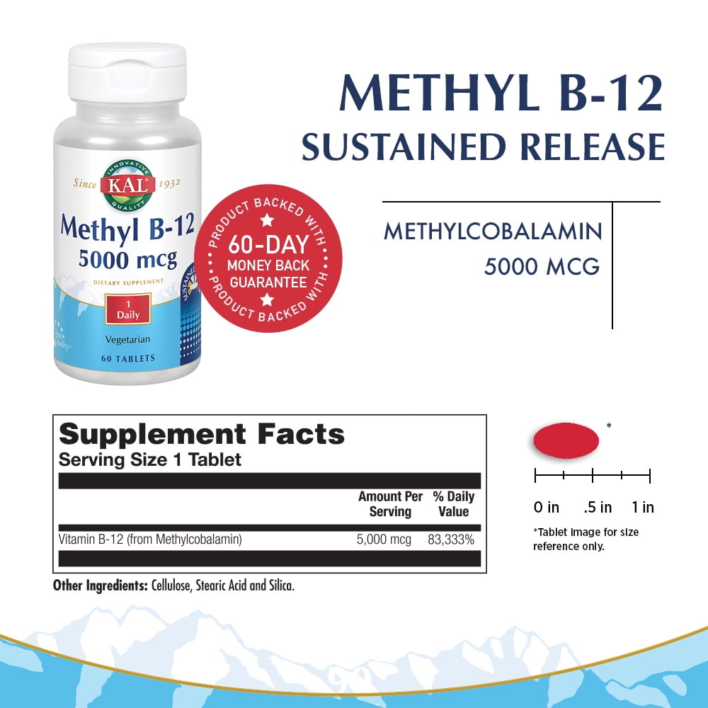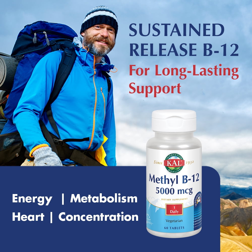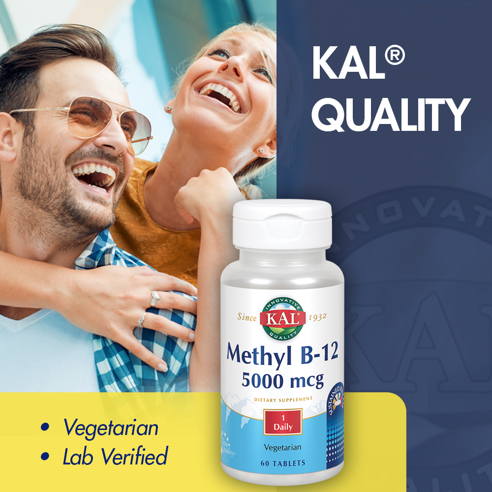 KAL Methyl B-12 5000 mcg Sustained Release | Healthy Metabolism, Energy, Nerve & Red Blood Cell Support | Vegetarian | Lab Verified | 60 Tablets