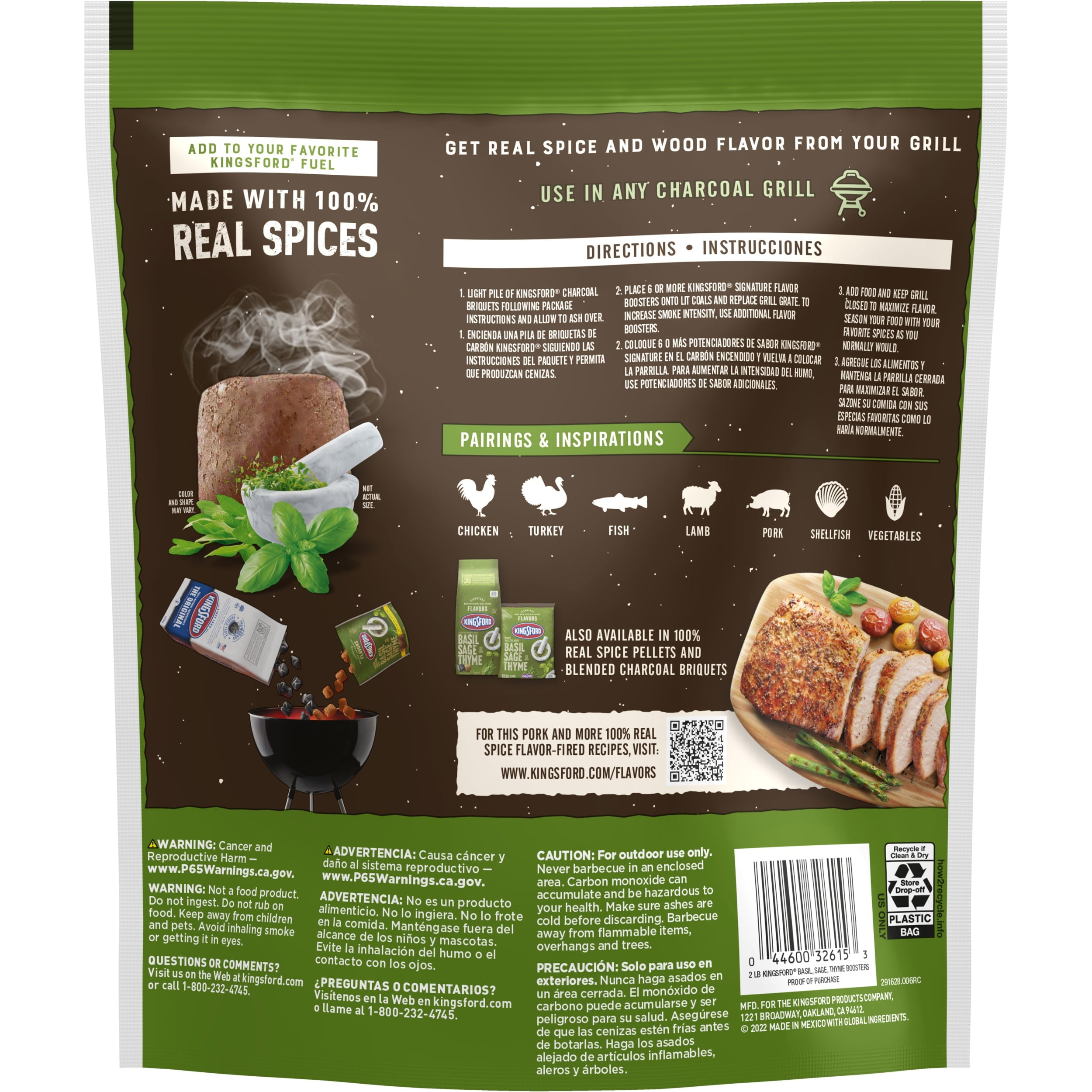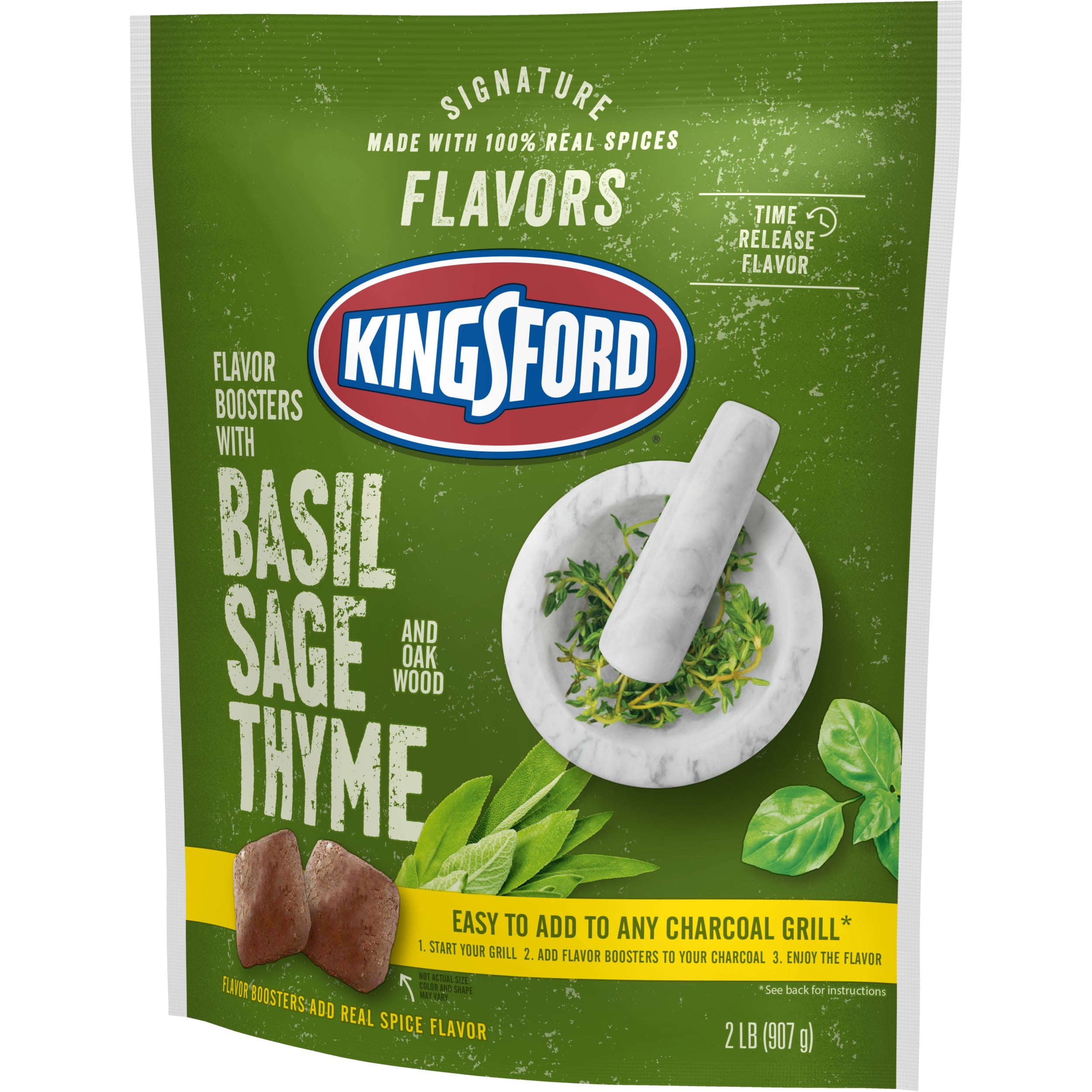 - USE IN ANY CHARCOAL GRILL: Kingsford Signature Flavors Flavor Boosters with Basil, Sage and Thyme are ready to use in any charcoal grill; see back of pack for instructions