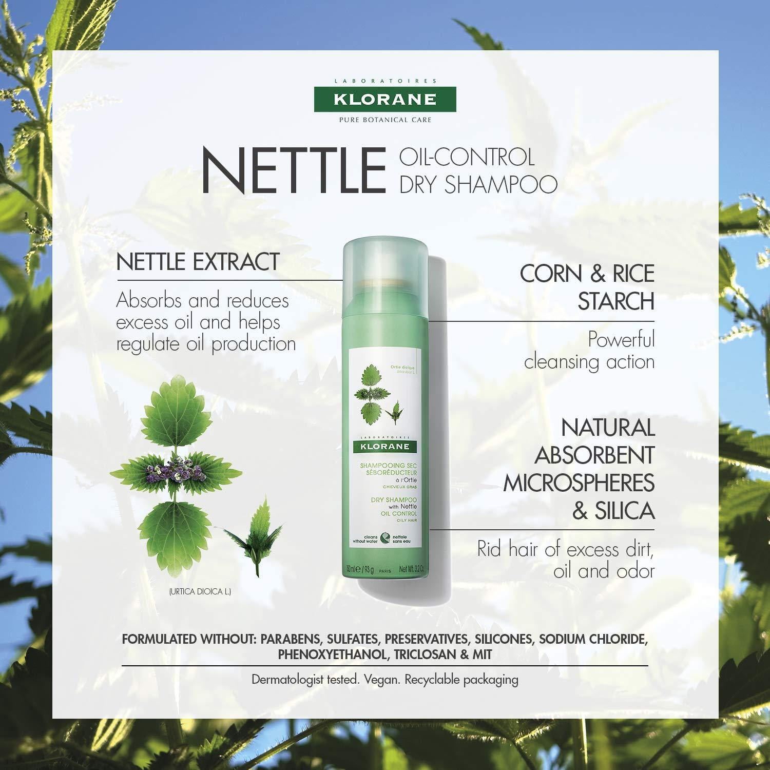 Klorane Dry Shampoo with Nettle for Oily Hair and Scalp, Regulates Oil Production, Paraben & Sulfate-Free NEW LOOK – 3.2 Ounce