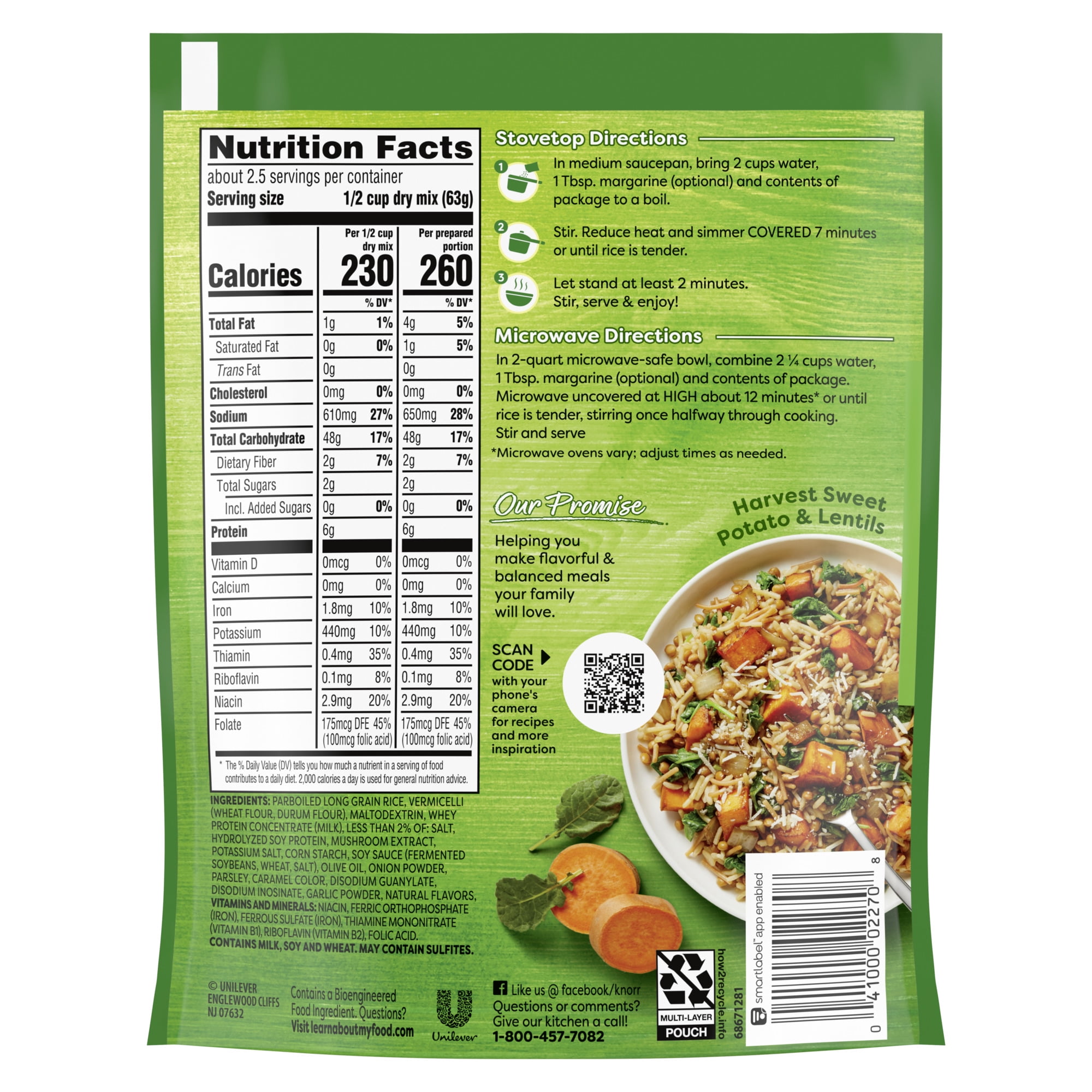 Knorr Rice Sides 5.5 ounces (Shelf-Stable) expertly combines natural flavors with a savory mushroom sauce. Cooks in just 7 minutes on the stovetop, or in the microwave, and they’re perfect as the base for a delicious main dish or as a standalone rice side dish. Knorr Rice Sides have no artificial flavors and preservatives. Use these easy rice side dishes to create a mouth-watering main dish. You can find great recipes from Knorr, like our chef-inspired Harvest Sweet Potato & Lentils.