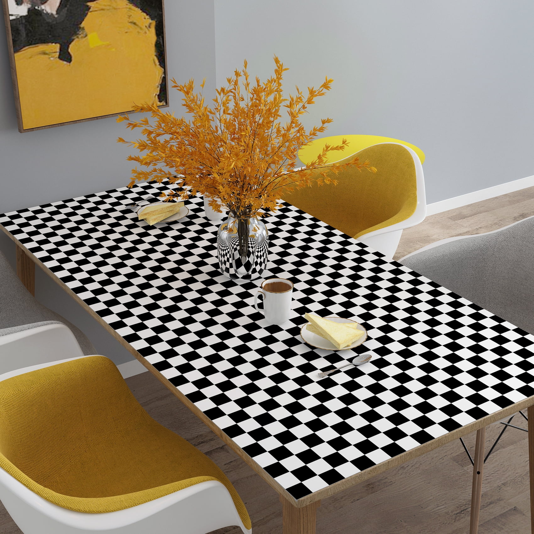 - The checkered wallpaper is removable, waterproof and maintain easily. Protect your furniture from HEAT and MOISTURE.
