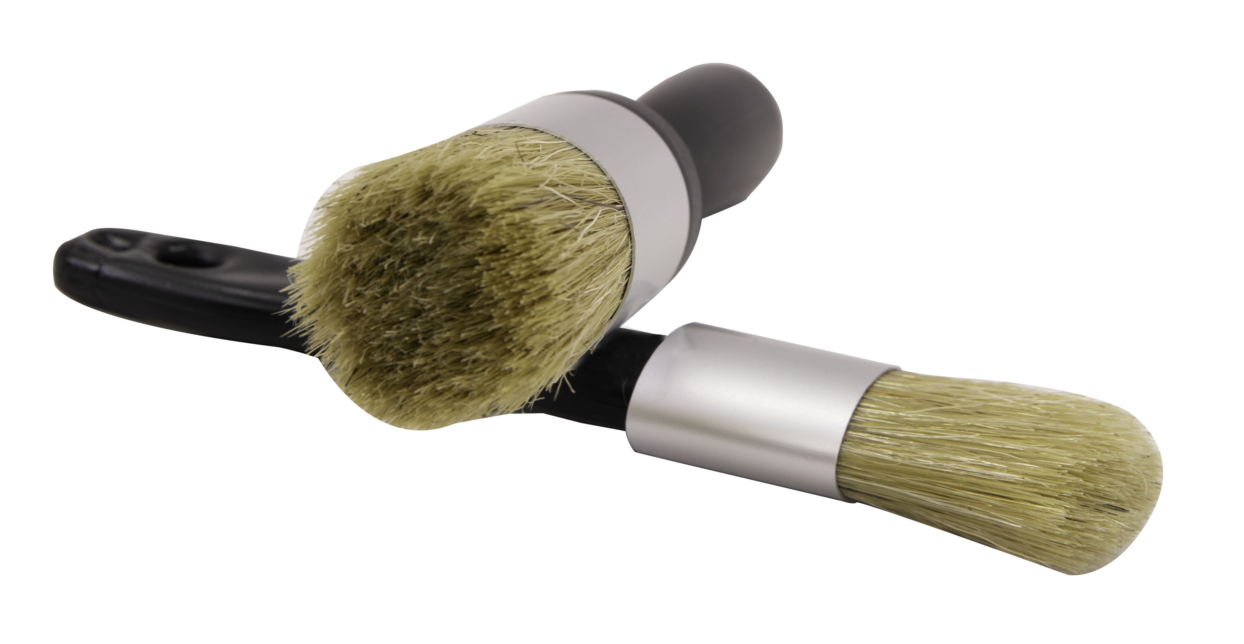 The BEST quality professional Artist 2 piece brush set is made of 100 percent natural bristle. This artist brush set by Linzer in great for furniture projects, picture frames and home accessories. This art brush set features two quality crafted brushes designed to provide superior coverage for use with chalk, acrylic and wax paints. The flat brush in the set is ideal for wax paints and the round brush is ideal for chalk paint. The brushes are easy to use and reuse when cleaned properly.