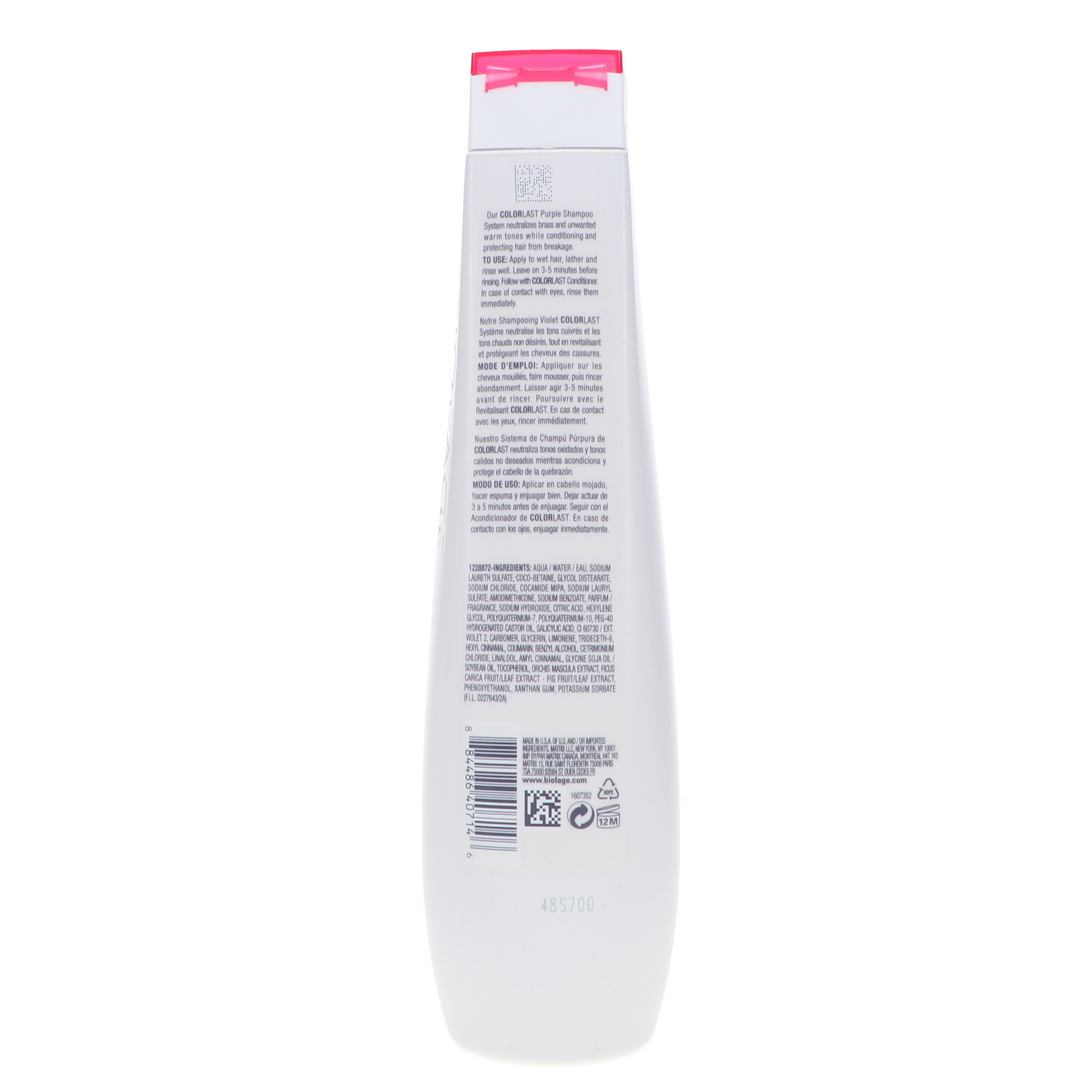 Our hair colors are precious because they represent our expression and your identity. That’s why it’s important to take special care of an already dyed or highlighted hue that you’ve just given yourself, naturally or otherwise. When breakage is at the root of dye fade-outs, there’s Matrix Biolage ColorLast Purple Shampoo 13.5 oz for you! This vegan formula wisely preserves highlights by eliminating brass/warm tones without interfering with natural pigments in blonde hair to reduce fading. And its weightless protein system leaves strands ravenish soft while rebooting long-lasting color vibrancy often lost after time spent talking harsh chemicals on tresses. With this shampoo, if need be, stubborn locks will snap back into their lasting hues.