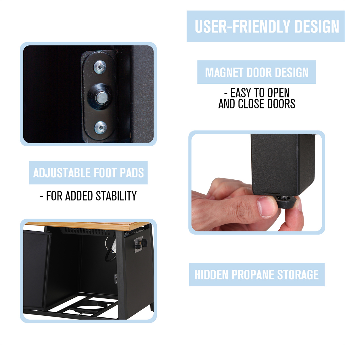 - Pre-attached hose regulatorincluded, easy access to a standard 20lbs propane tank (not included)