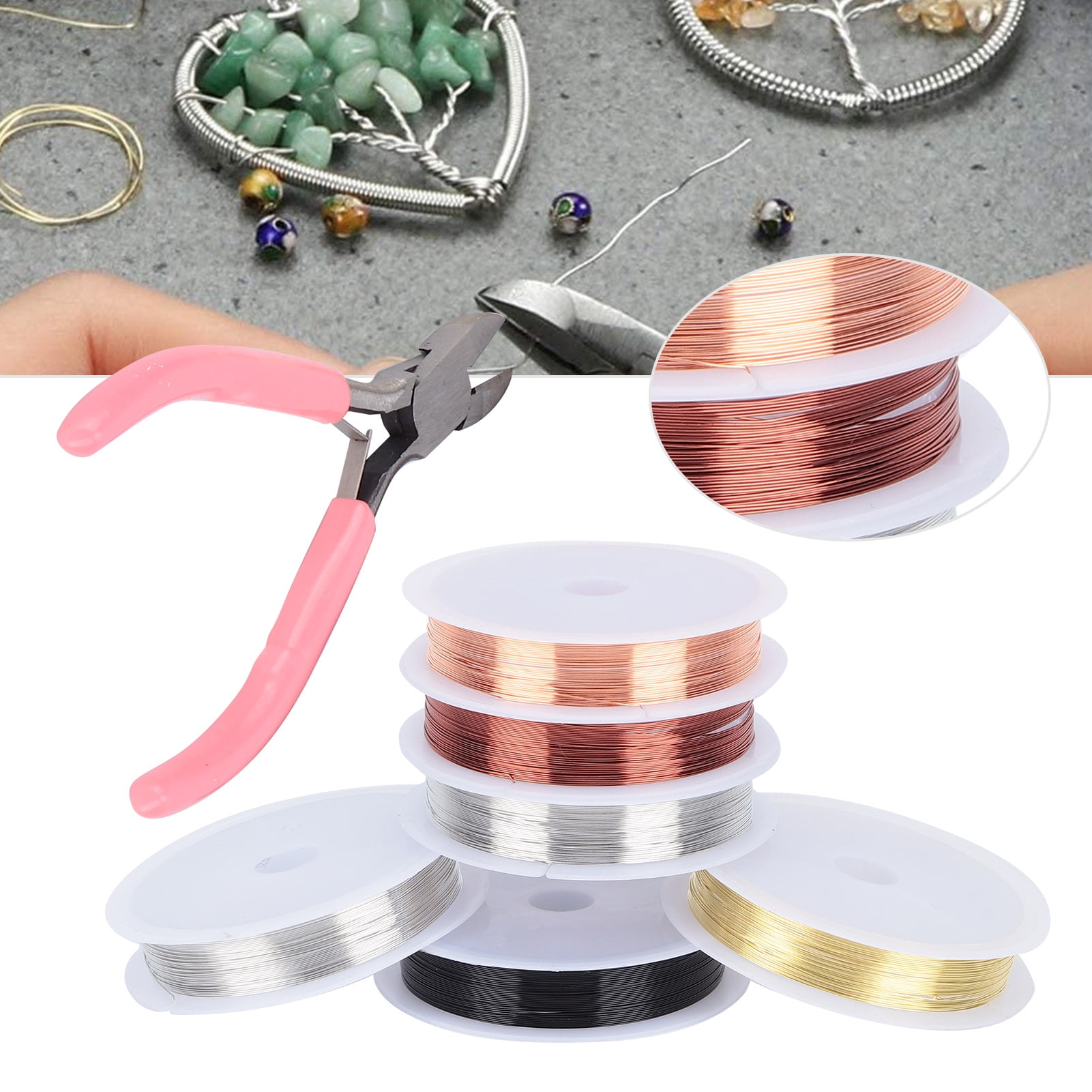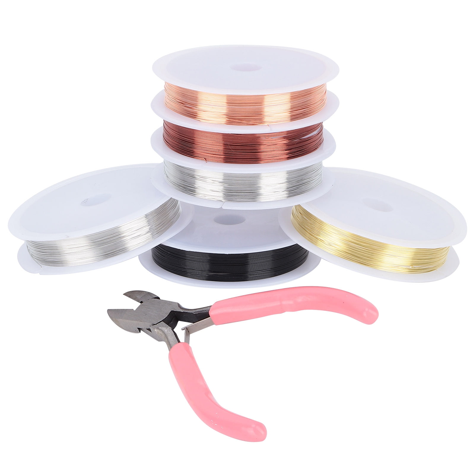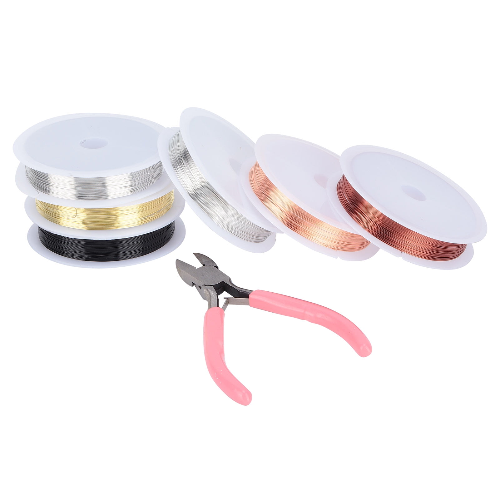 Mgaxyff 6 Pack Jewelry Wire Beading Set Brass Roll W/ Mini Diagonal Plier For DIY Crafts