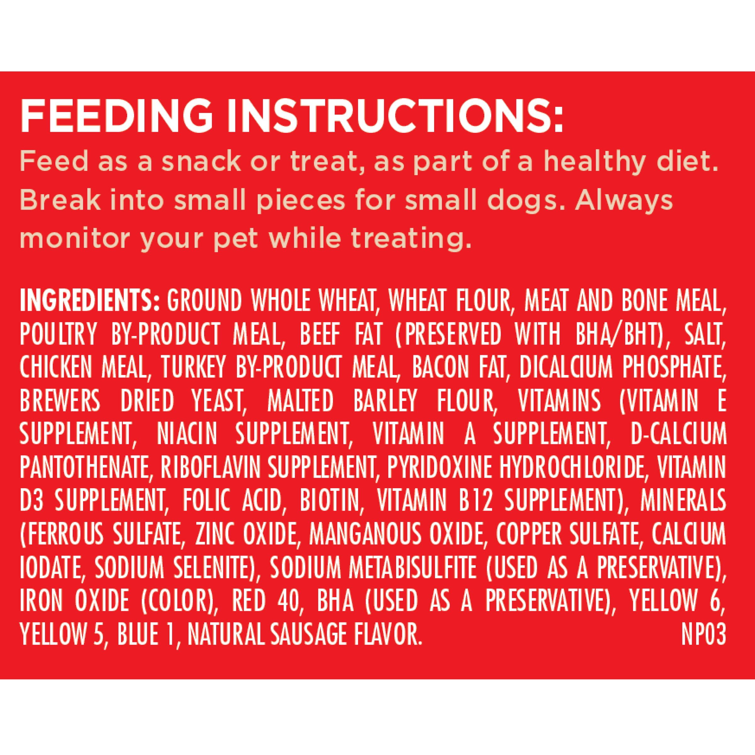 - Milk-Bone treats in chicken, bacon, sausage, beef and turkey flavors