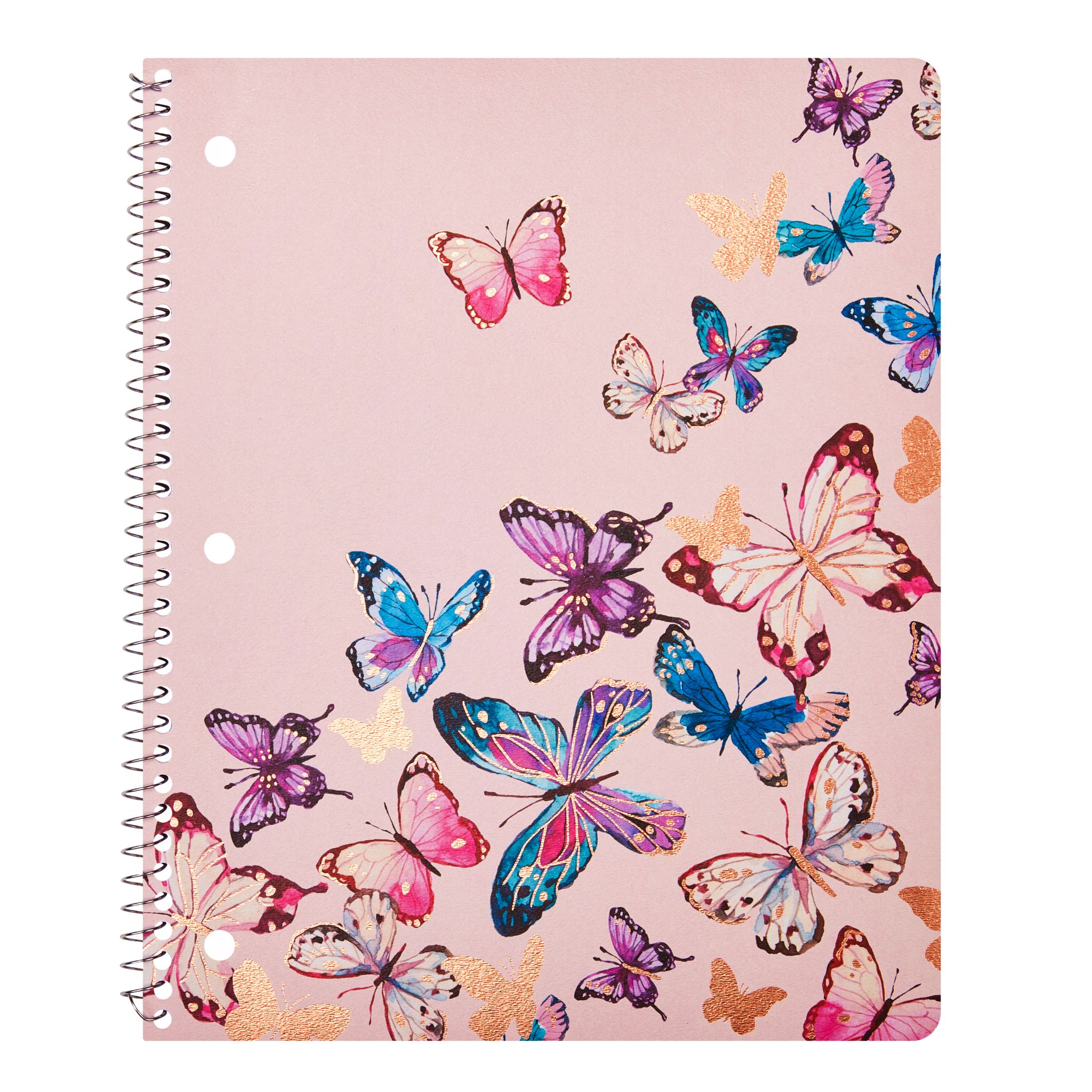 This 4pc Stationary Bundle has everything you need to get ready for the new school year. Set includes a 1" 3-Ring Binder, 1-subject Notebook, Compostion book and Two Pocket Folder. Each piece in the set is designed with a coordinating butterfly print so your desk will look stylish and organized! The 1-subject notebook has spiral binding, 80 wide ruled sheets, micro perforated pages with 3-holes so you can easily tear out the sheets to store in the two pocket folder or 3-ring binder. The composition book has 80 wide ruled sheets with stitched binding and is great for taking notes in class. This set is not only beautiful but eco-friendly, too! All items are made from at least 60% recycled, FSC certified paper.