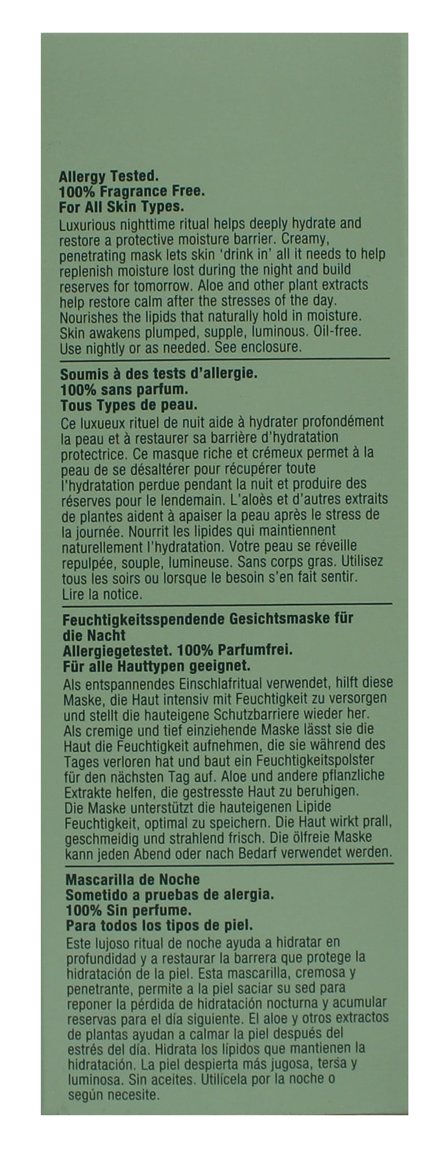 Creamy, penetrating night mask helps skin drink deep to replenish lost moisture, build reserves for tomorrow. All night long, it soothes and nourishes to help skin hold in moisture. And touch soft, dewy, glowing skin. Oil-free.