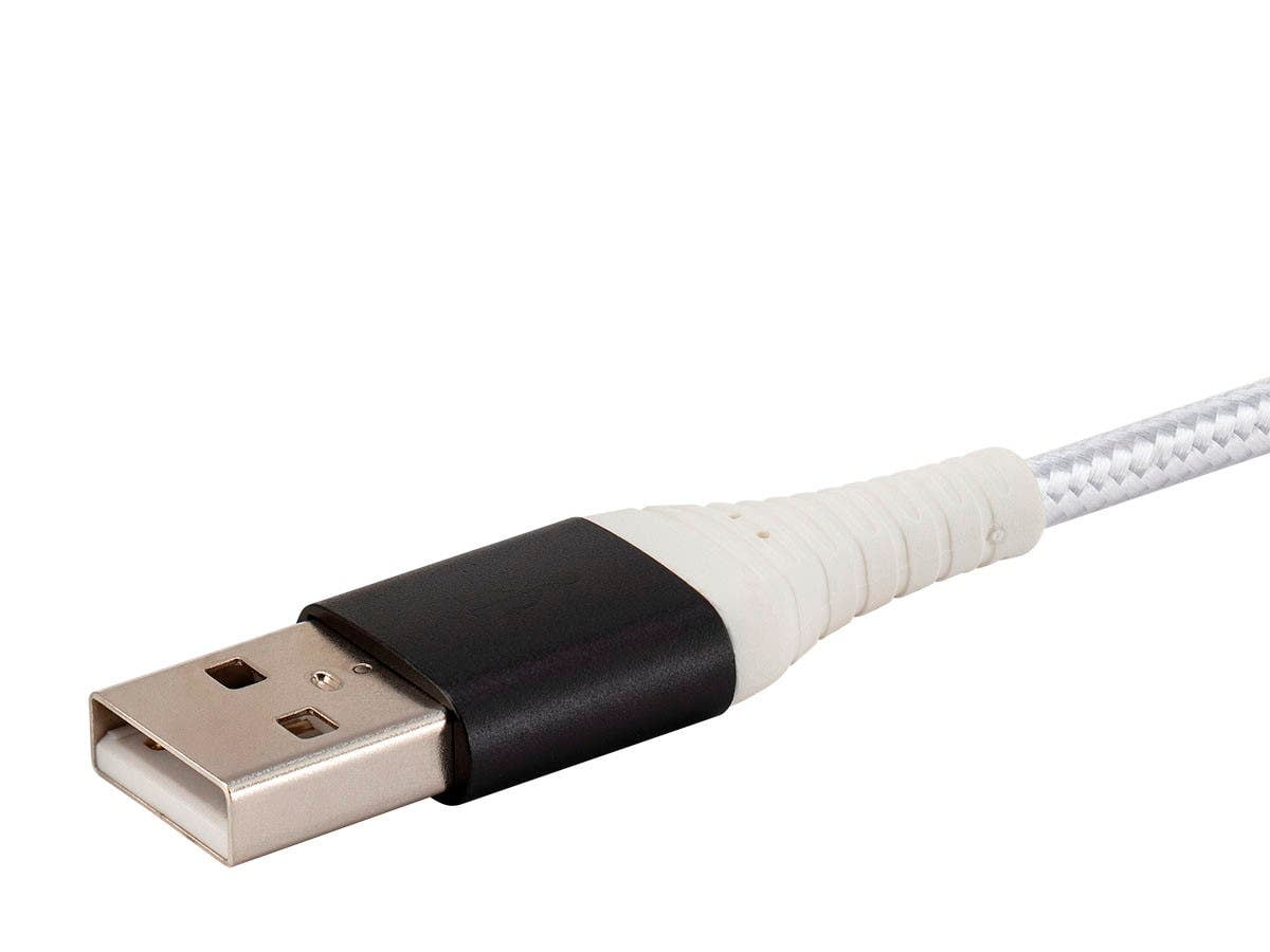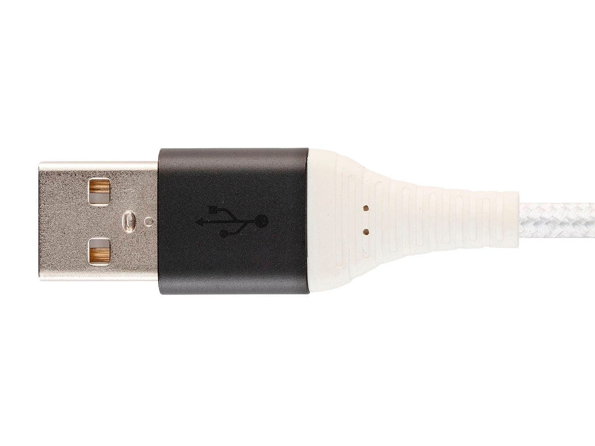 Monoprice AtlasFlex cables are built to outlast and outperform every cable that’s come before. Each cable is fitted with reinforced, robust aluminum connectors to withstand any and all bends, drops, pulls, and mishaps. The long flexible strain reliefs are designed to last, flexible enough to bend and turn under stress and long enough to handle odd angles. The colorful nylon-braided cables are internally reinforced with Kevlar to withstand more than 50,000 bends, twists, and turns.