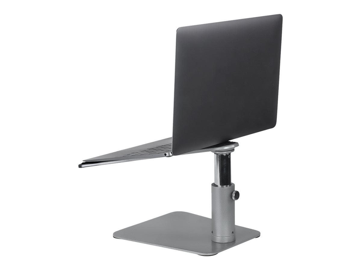 The MI-7271 adjustable laptop riser is designed with MacBooks in mind, but is compatible with most laptops. Raise your laptop to an ergonomic height to attain better posture, and fix securely in place. The tilted position of the laptop helps to reduce glare and eye strain. The anti-slip padding provides security and keeps your laptop in place.