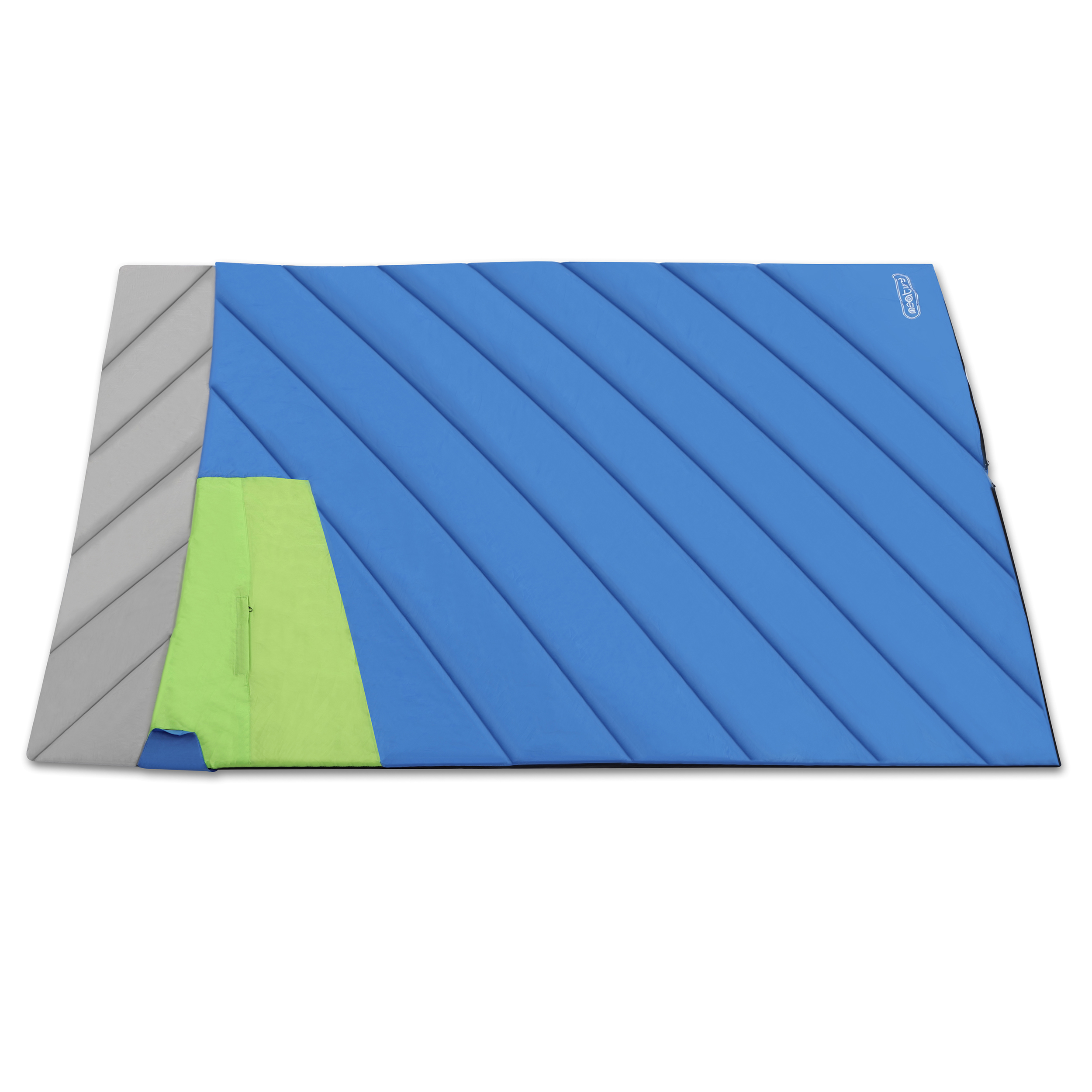 Travel with fewer supplies on your next camping trip by fitting your loved ones into the Queen-sized Neature Double Sleeping Bag. This large camping sleeping bag extends to 80 inches long and 56 inches wide to fit 2-4 people and is perfect for couples or families. Lightweight and compact, the queen size double sleeping bag rolls tightly into the included bag and only weighs 7lbs (112oz) making it easy to travel with. Polyester material puffs up when in use and is easy to clean. Clean dirt, mud, or melted smores messes with a wet washcloth, or clean the double wide sleeping bag in the washer. Package includes 1 blue and silver dual person sleeping bag with 2 pillows. A small zip-up pocket is sewed into the bag and is ideal for storing petite items such as a flashlight, wallet, or keys.Neature Adult Double Sleeping Bag – Queen Size Backpacking Double Sleeping Bag