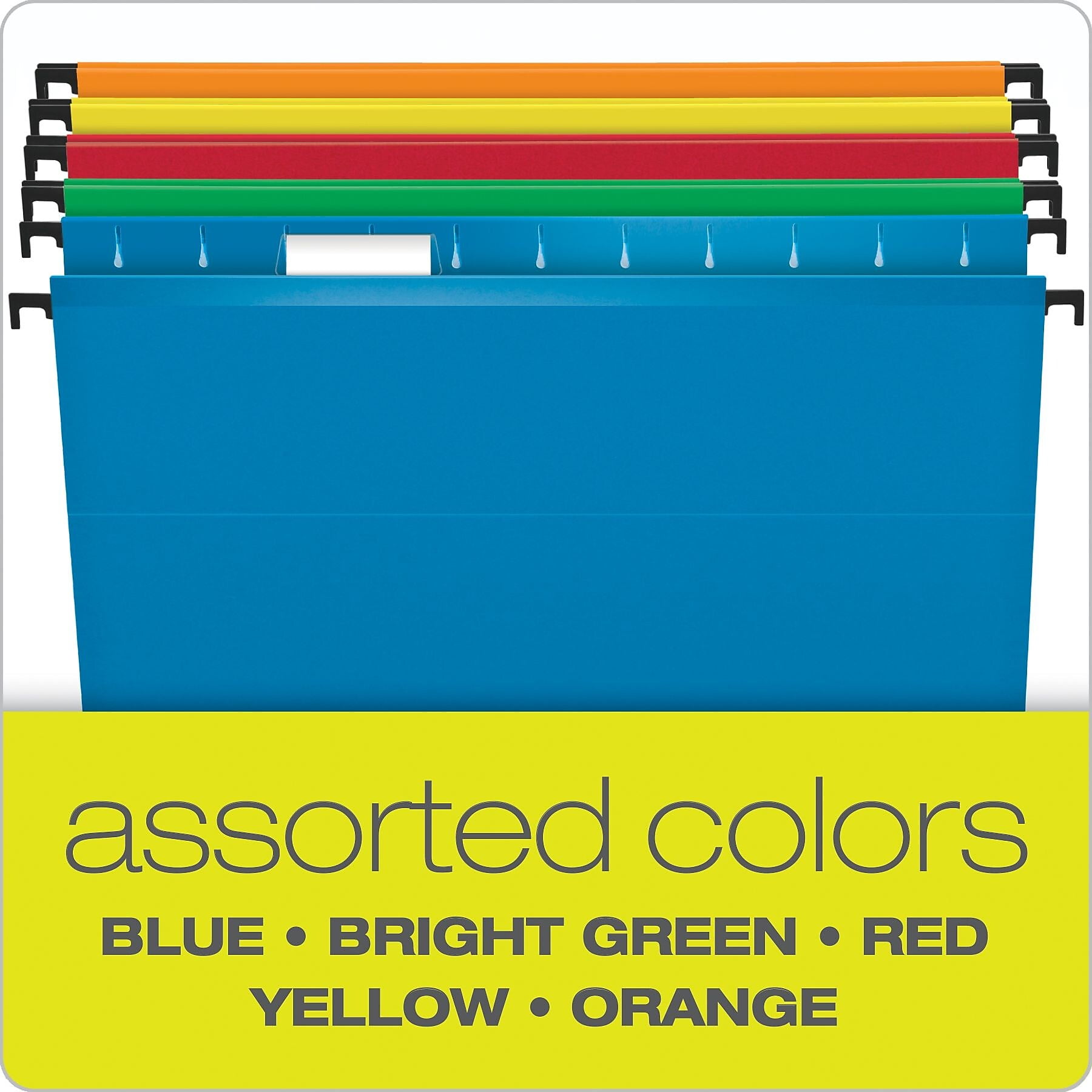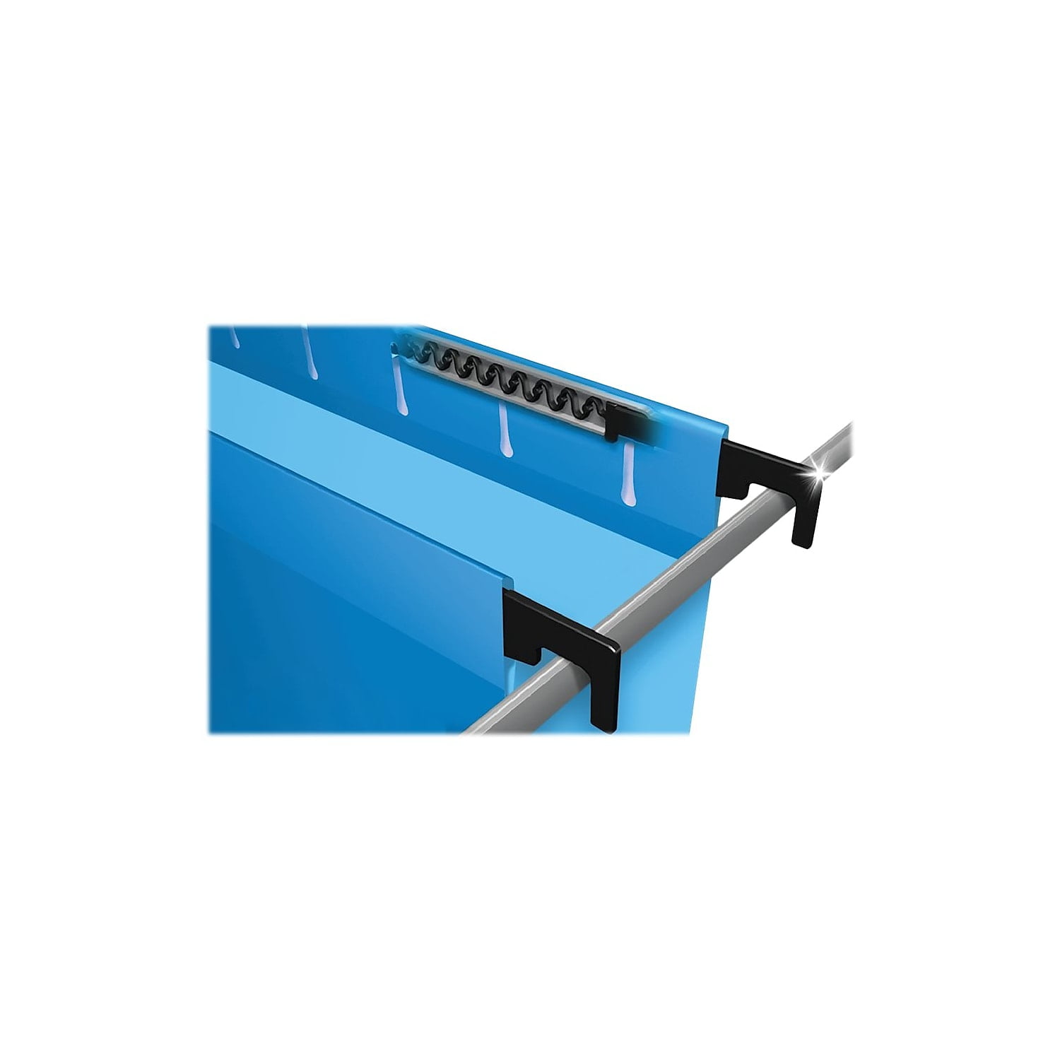 Hanging file folders feature Sure Hook technology with longer plastic hooks and revolutionary, built-in tension springs so the rods bend less. Folders stay on rails and slide with ease. Reinforced Poly laminated tops and bottoms offer ultimate durability. Rods and hooks are strong and sturdy.