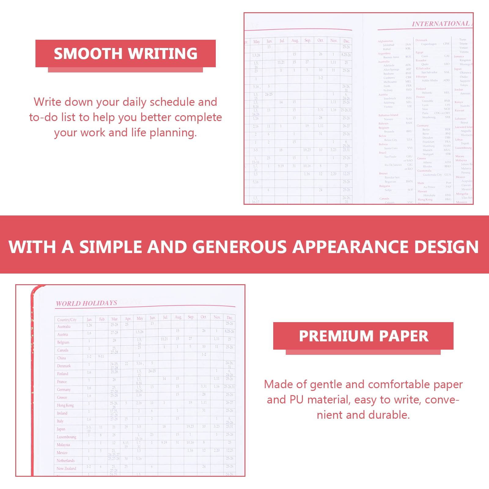 Premium paper, smooth writing. Suitable for you to record your kinds of schedule, your daily plans and write wish list, etc. Beautiful notebook cover makes it more attractive to people. Send this schedule notebook to your friends as a gift.