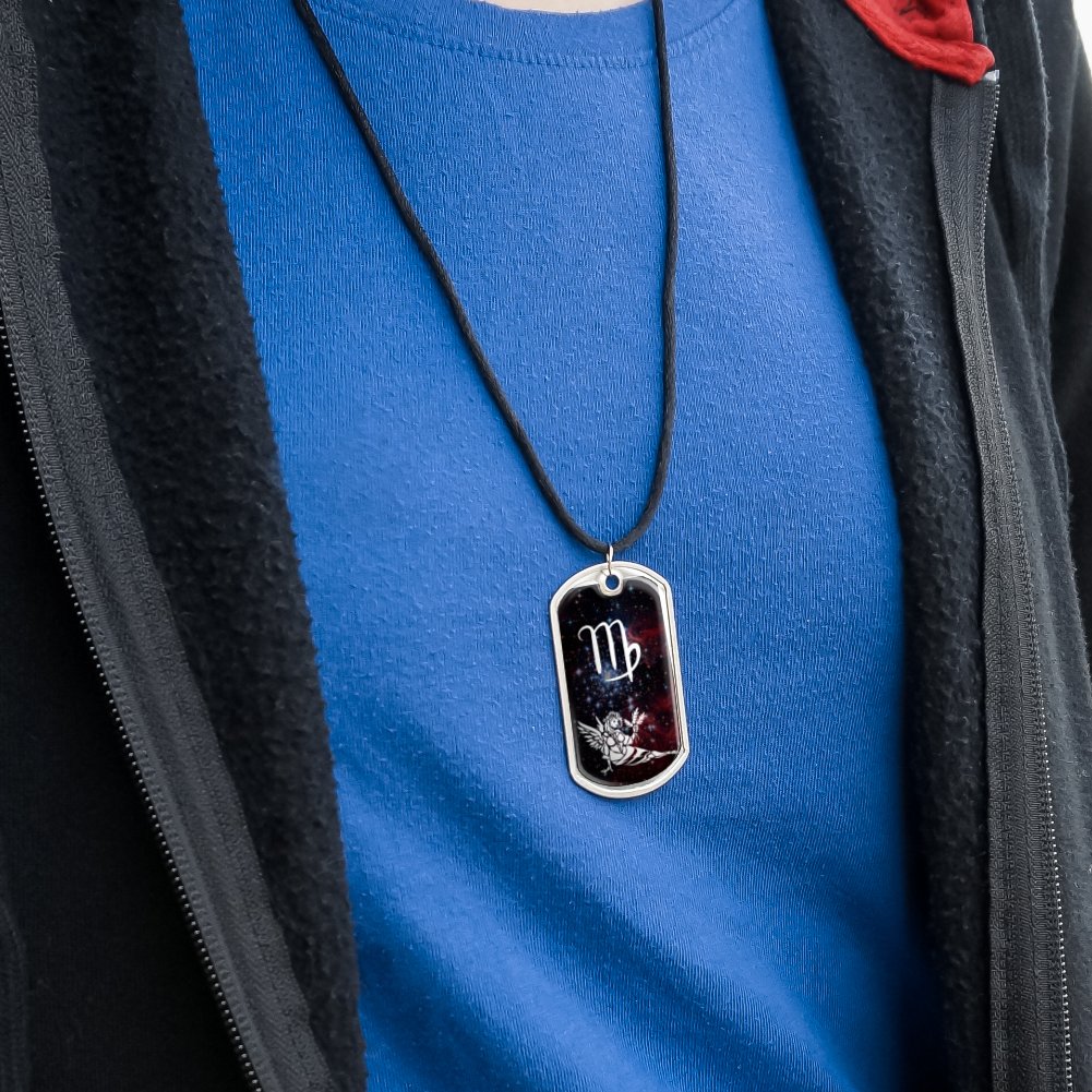 Virgo Maiden Zodiac Sign Horoscope in Space Military Dog Tag Pendant Necklace with Cord