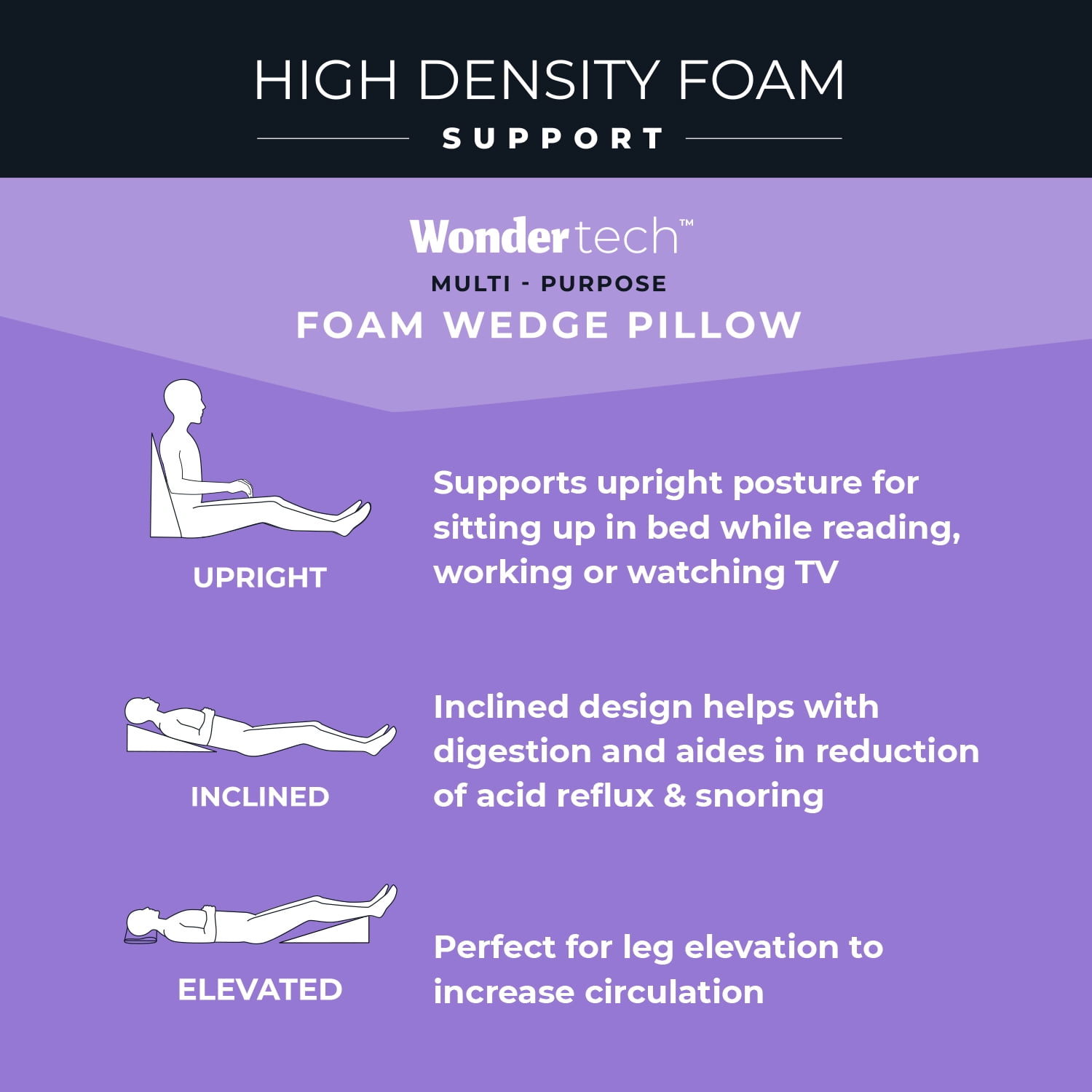 Wondertech Multi-Purpose Foam Wedge Pillow, White