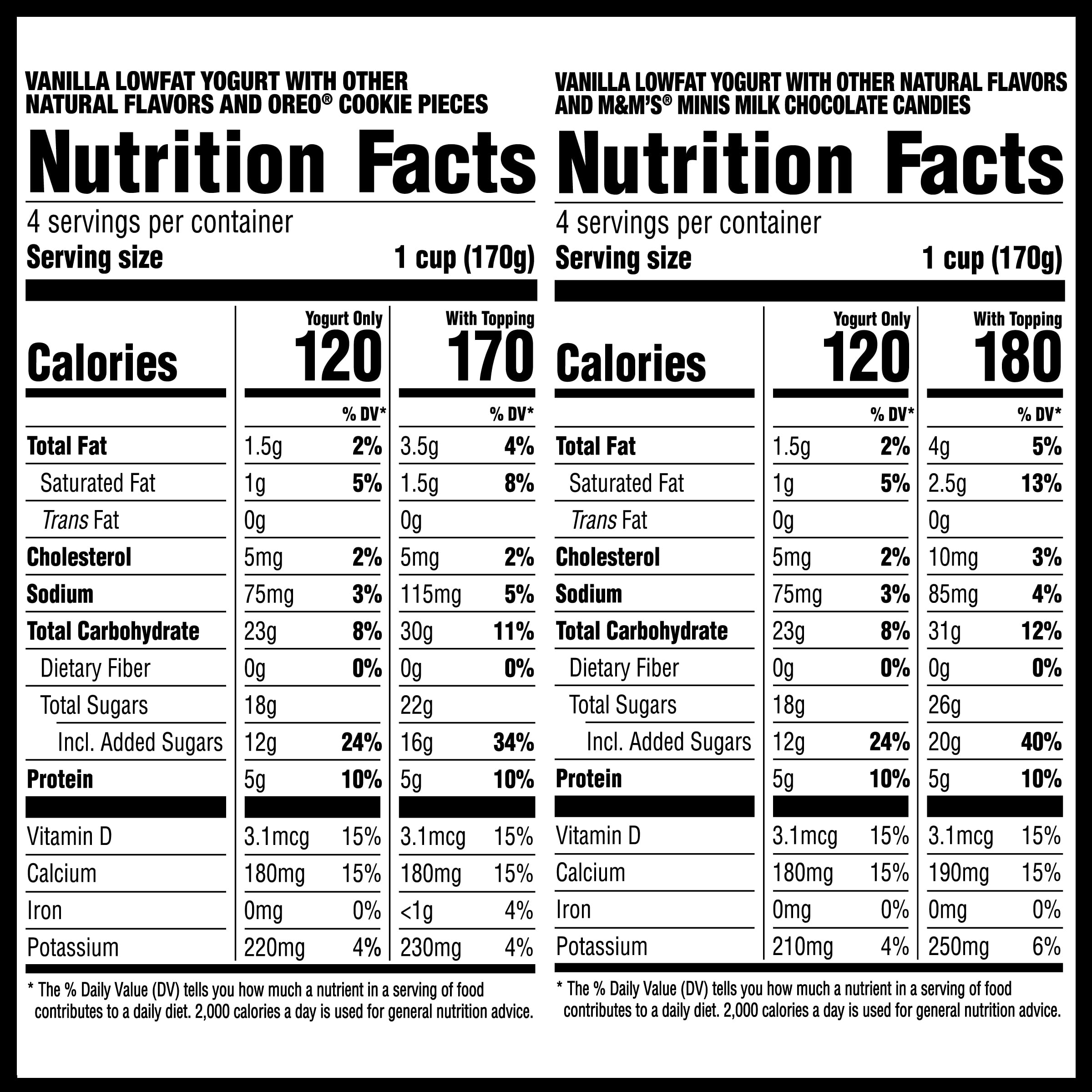 Make snack time fun with YoCrunch Lowfat Vanilla Yogurt with OREO and M&Ms. This lowfat yogurt is deliciously smooth and creamy–and best of all, it comes with OREO pieces and M&Ms topping, so you can add a fun crunch to every bite.
