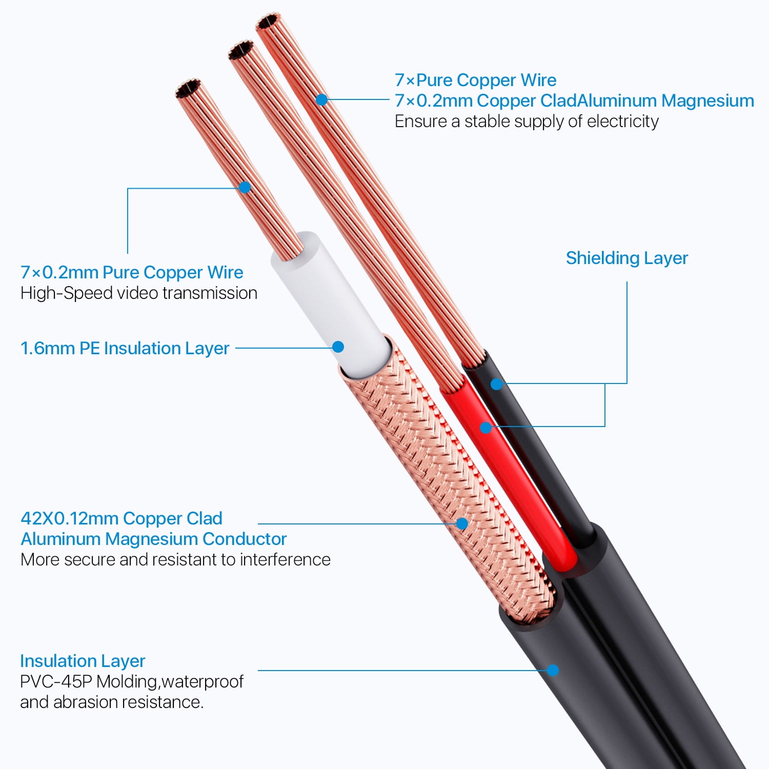 The black cable is made of pure copper material,featuring lower resistivity and better electrical conductivity. -