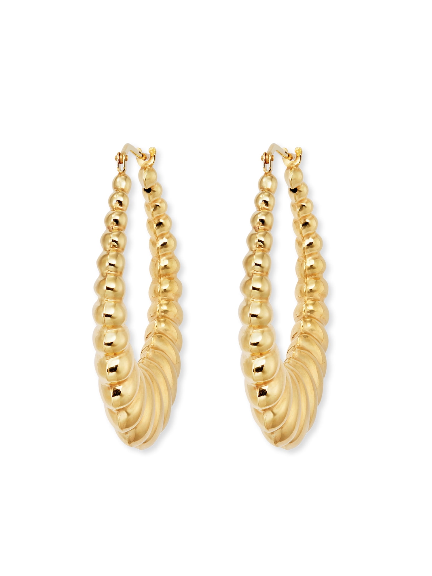 BRILLIANCE FINE JEWELRY Adult Females 14K Gold Plated -Oval Scallop Hollow Hoop Earrings