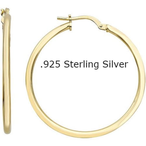 Solid Sterling Silver Gold Plated 1′ Hoop Endless Hoop Earrings .925 Stamped