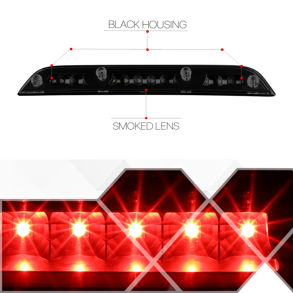 For 2015 to 2020 Ford F150 F250 F350 F450 F550 Super Duty Rear LED 3rd Third Brake Light Tail Stop Lamp Black Housing Smoked Lens 16 17 18 19