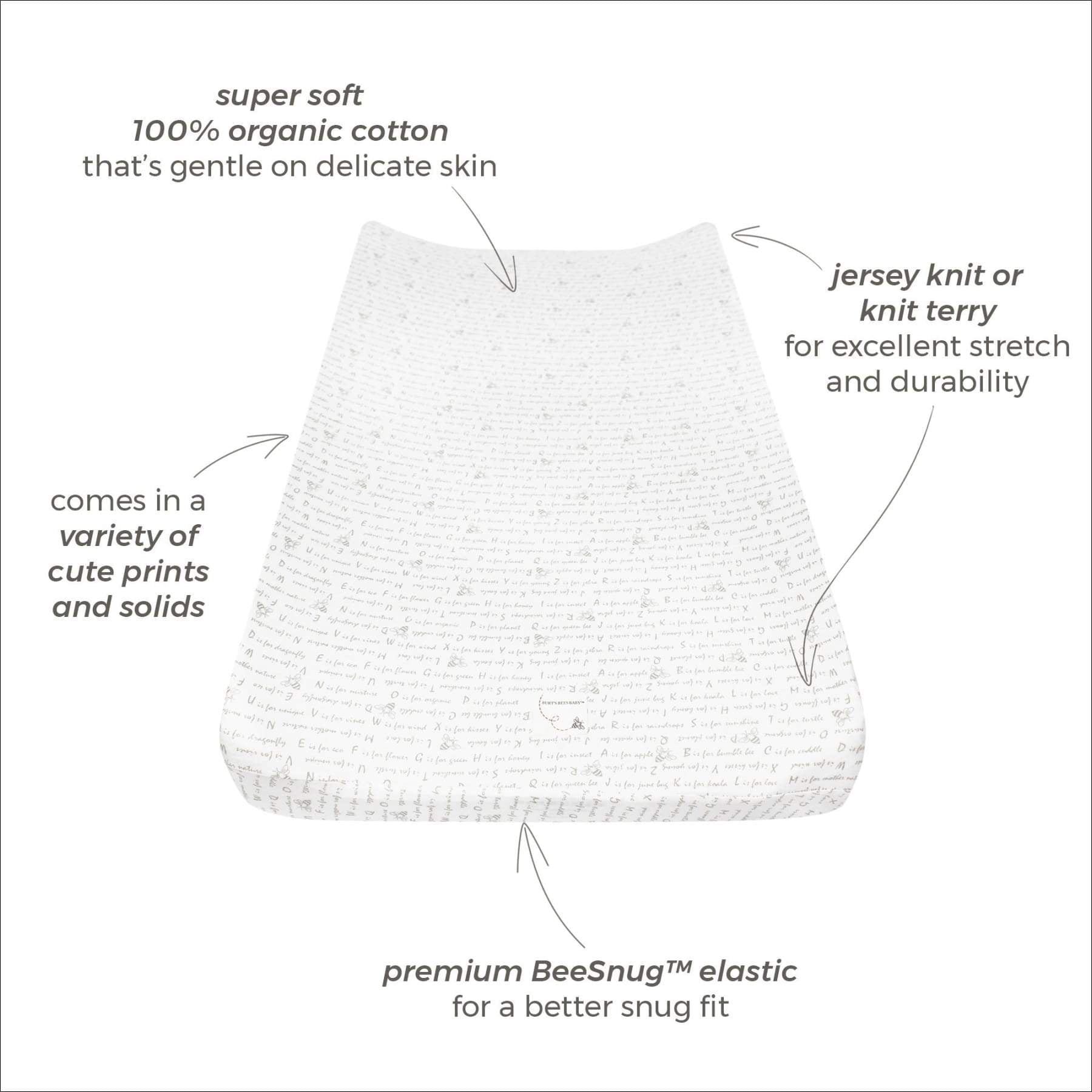 Burt’s Bees Baby Honeybee Print Organic Changing Pad Cover, Heather Grey