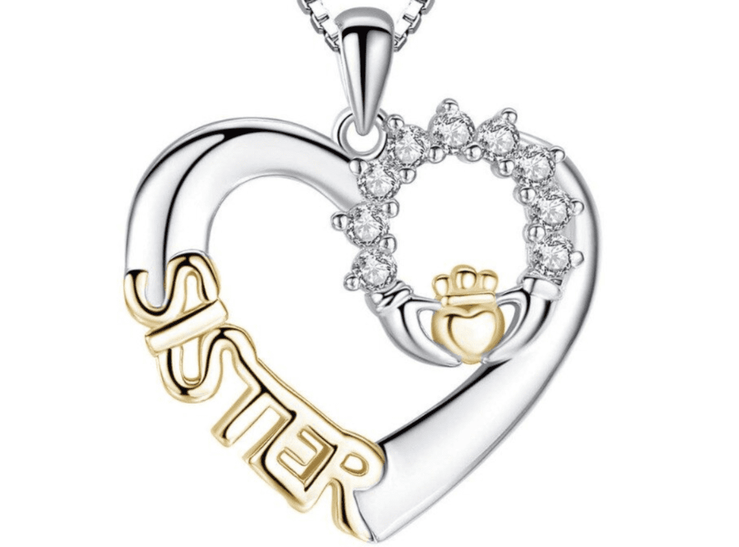 Sister Necklace Heart Crystal Pendant Gold and Silver Plated Anti-Tarnish Necklace Jewelry-18-B