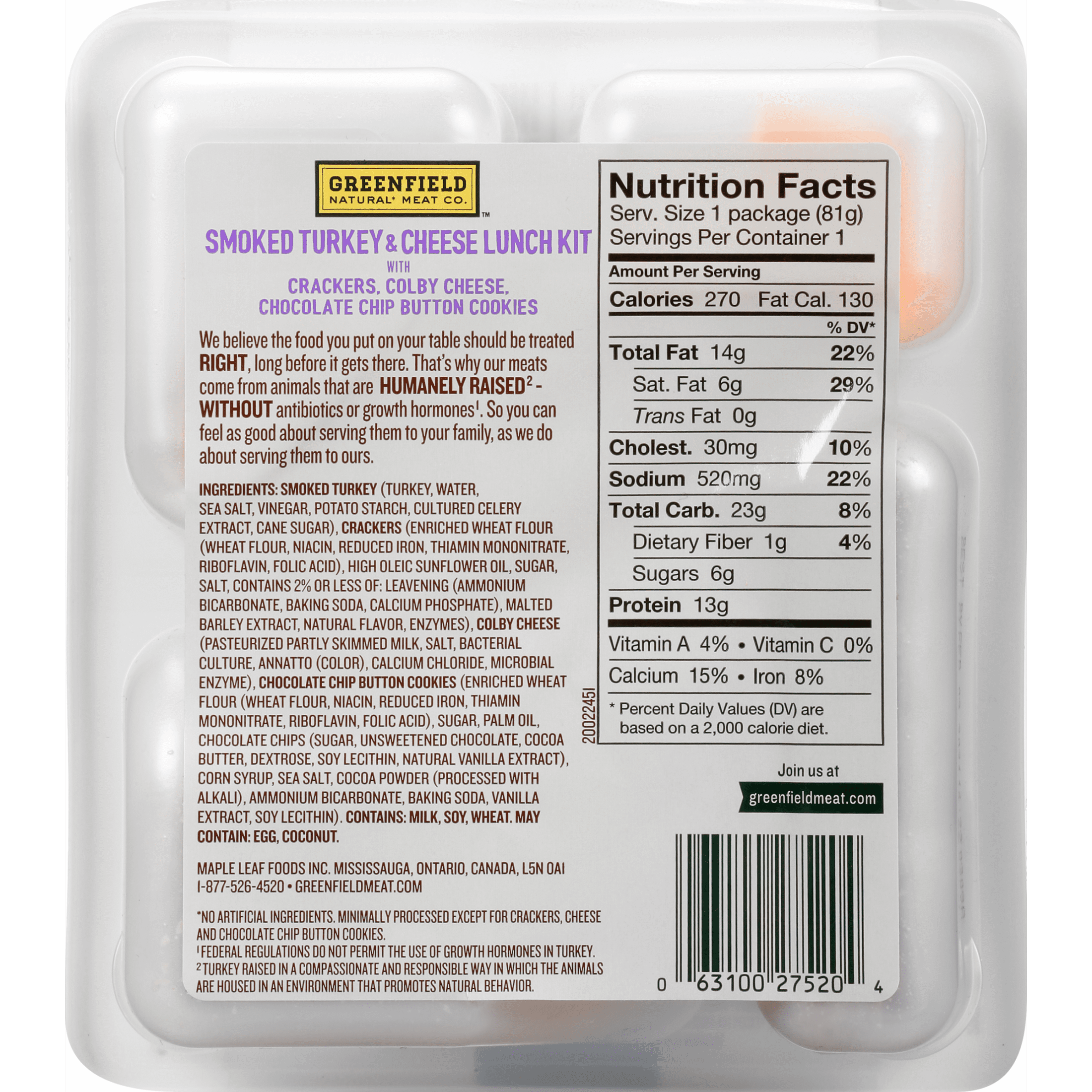 Greenfield Natural Meat Smoked Turkey & Cheese Lunch Kit, 2.9 oz