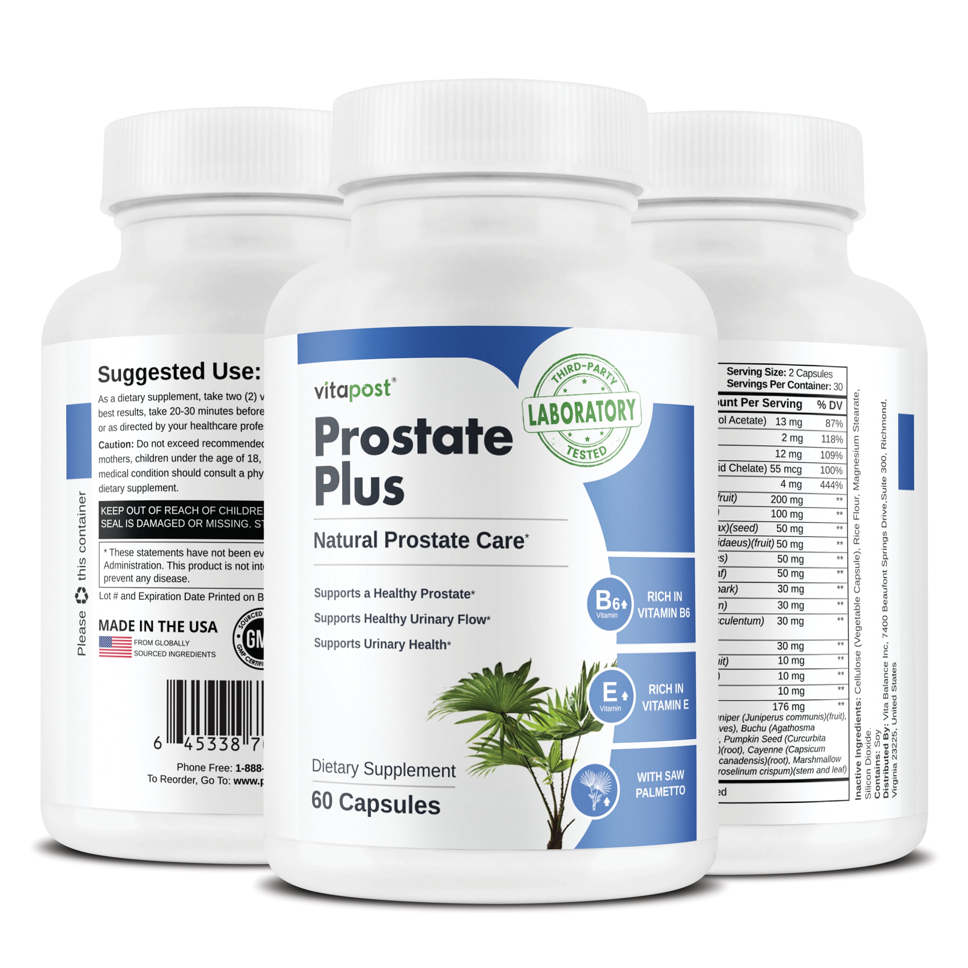 VitaPost Prostate Plus Supplement with Zinc, Saw Palmetto, Pygeum – 60 Capsules