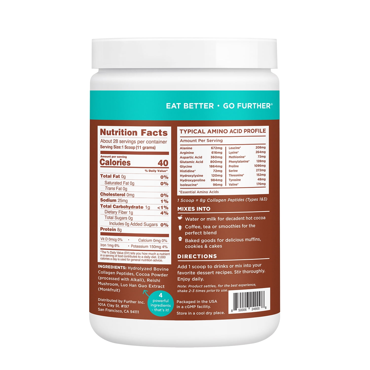 Further Food Chocolate Collagen Peptides Powder Plus Reishi Mushroom, Grass-Fed, 11 oz