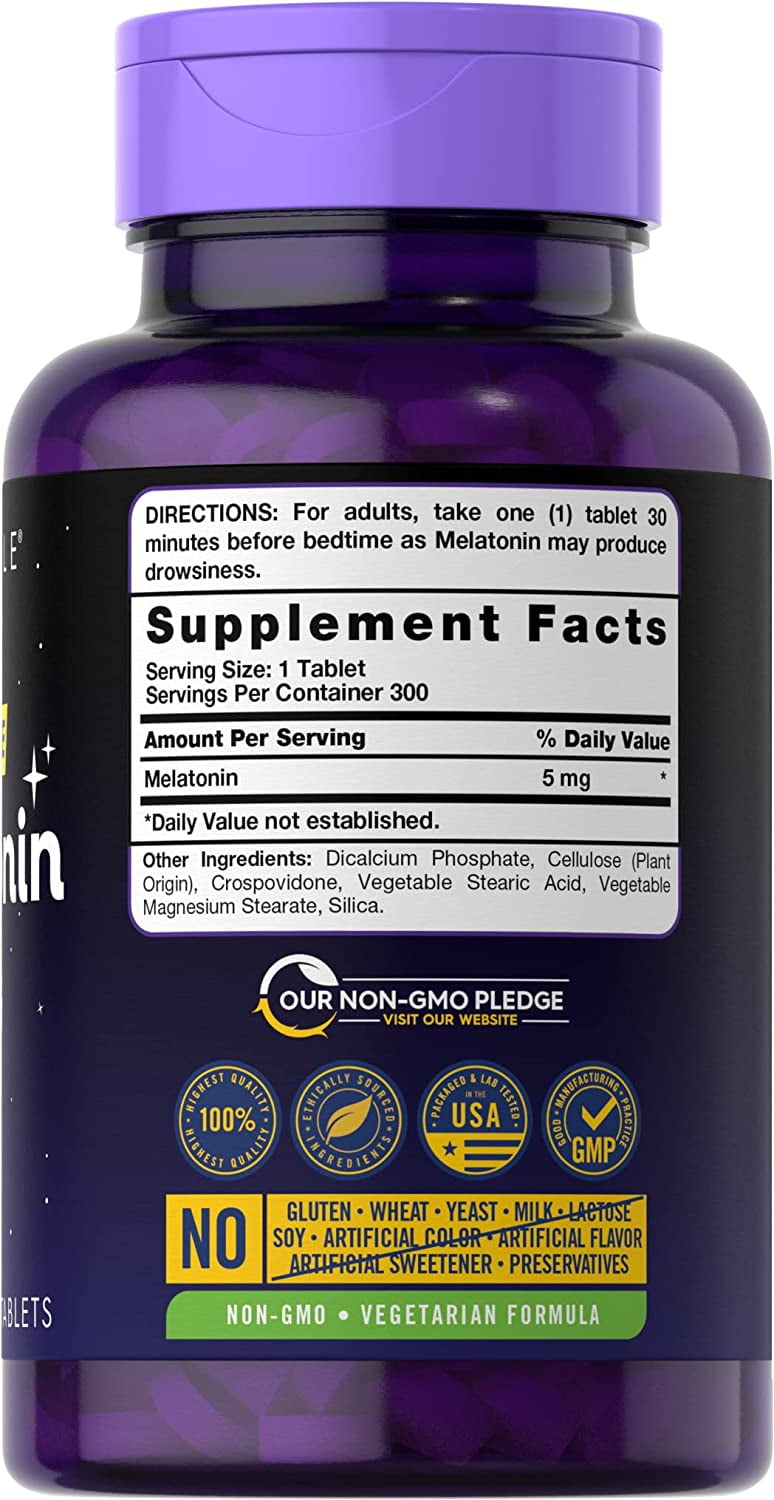 Carlyle Melatonin 5mg | 300 Tablets | Nighttime Sleep Aid | Vegetarian, Non-GMO, Gluten Free