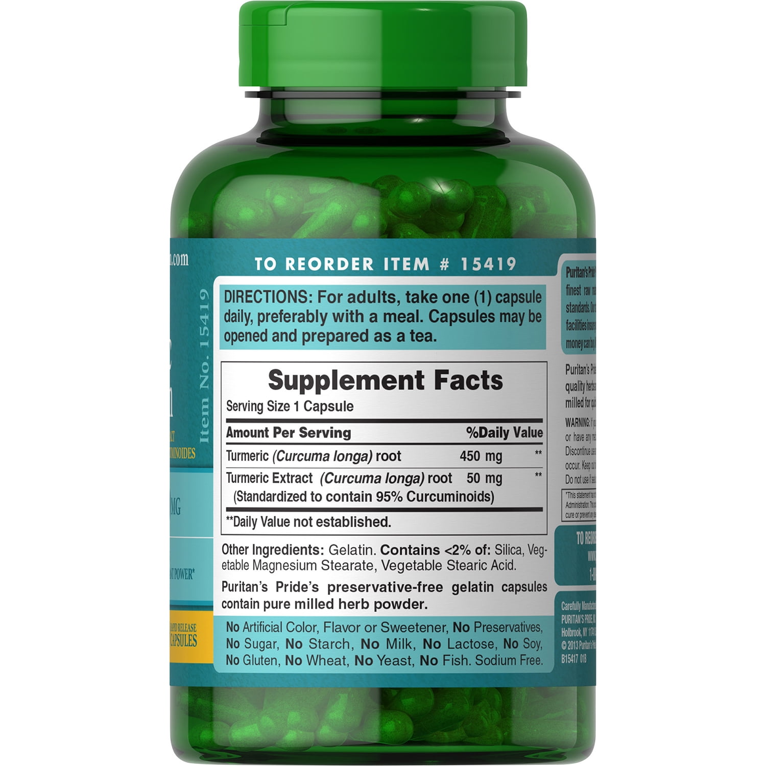 Puritan’s Pride Turmeric Curcumin 500 mg, Herbal Supplement, green, 180 count capsules