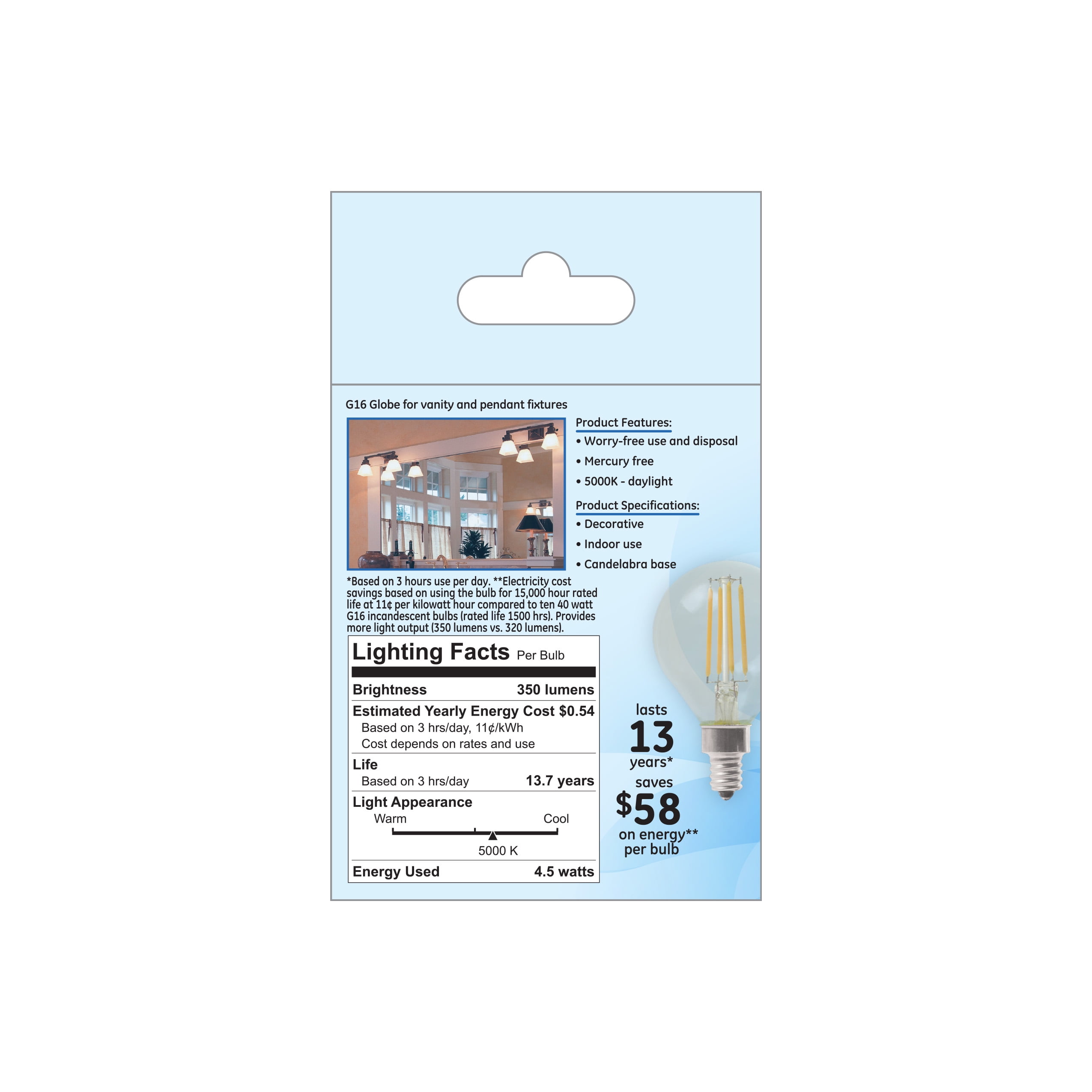 G25 LED Vanity Globe Light Bulbs, Dimmable, 2700K Soft White, Pack of 6