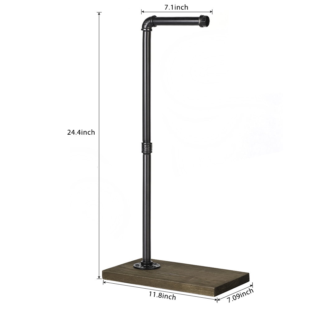 Toilet Paper Holder, Industrial Iron Pipe with Wood Base, Black by Oumilen