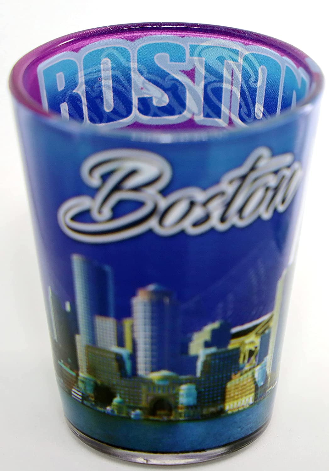 Boston Massachusetts Blue Skyline Outside Pink Skyline Inside Shot Glass…
