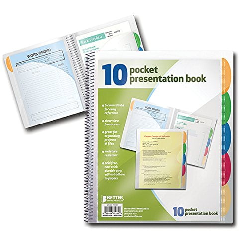 Better Office Products 10 Pocket Poly Presentation Folder with tabs, 2 Count