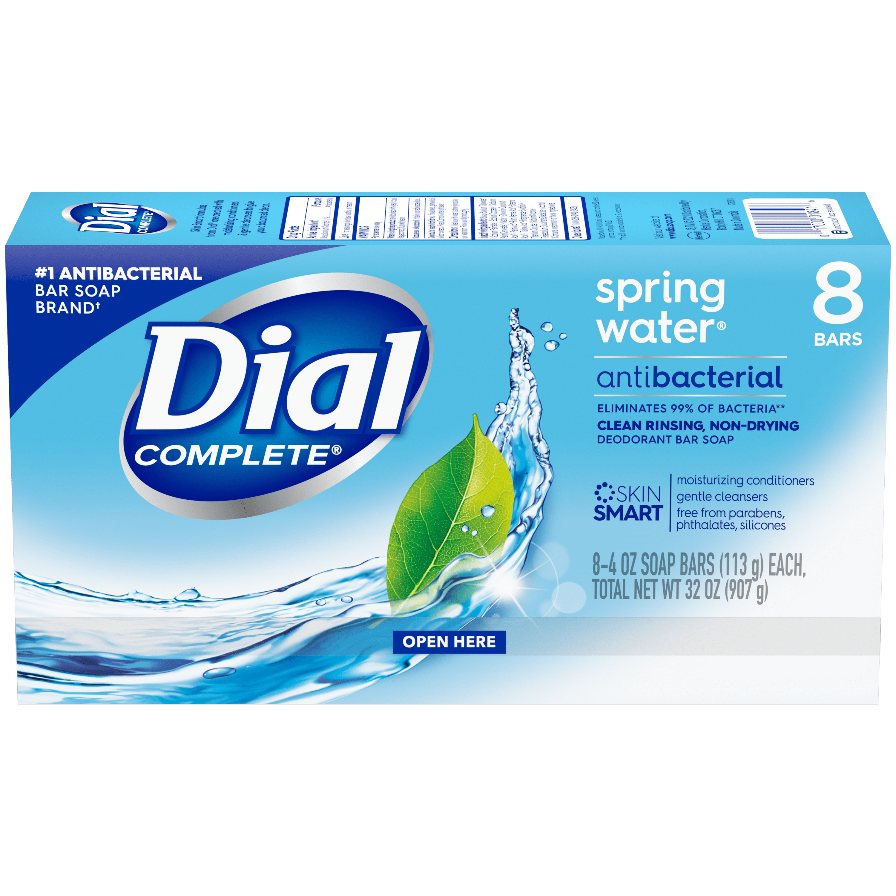 Dial Antibacterial Bar Soap, Spring Water, 4 oz, 8 Bars