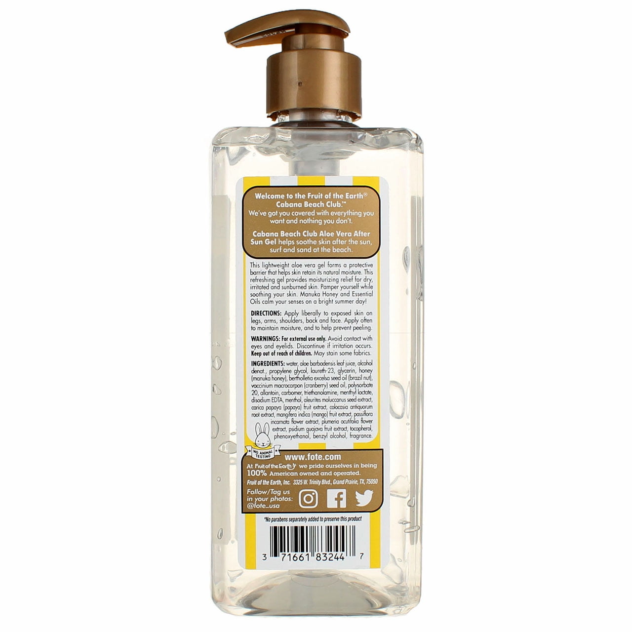Fruit of the Earth Cabana Beach Club Aloe Vera After Sun Gel with Manuka Honey & Essential Oils – 16 oz