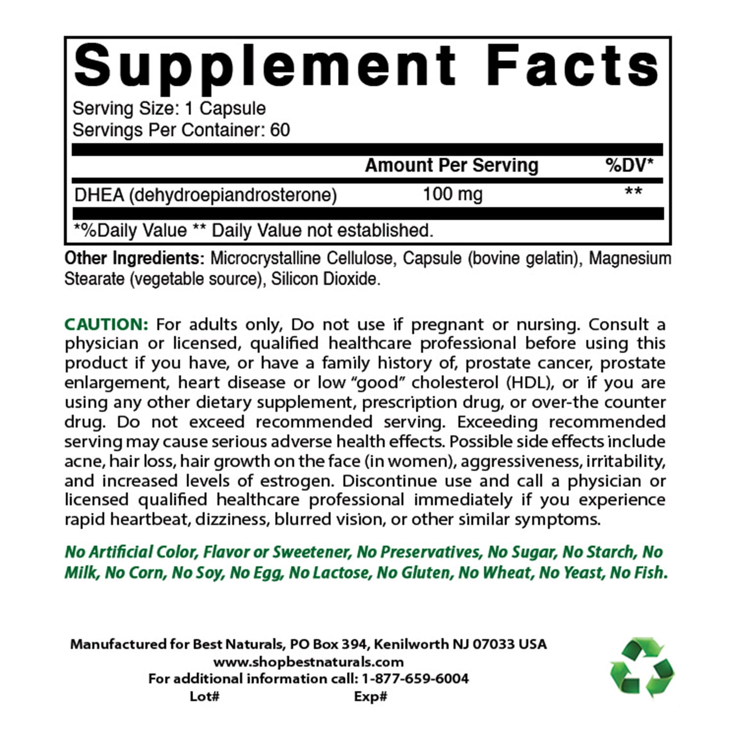 Best Naturals – DHEA Promotes Optimal Hormone Levels 100 mg. – 60 Capsules