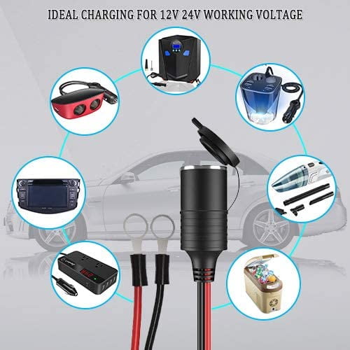 - Type: Cigarette Female Plug to "O" ring terminal; Cable: SPT-2 2/C 16AWG, 10FT Red & Black Heavy Duty 100% Copper Wire.