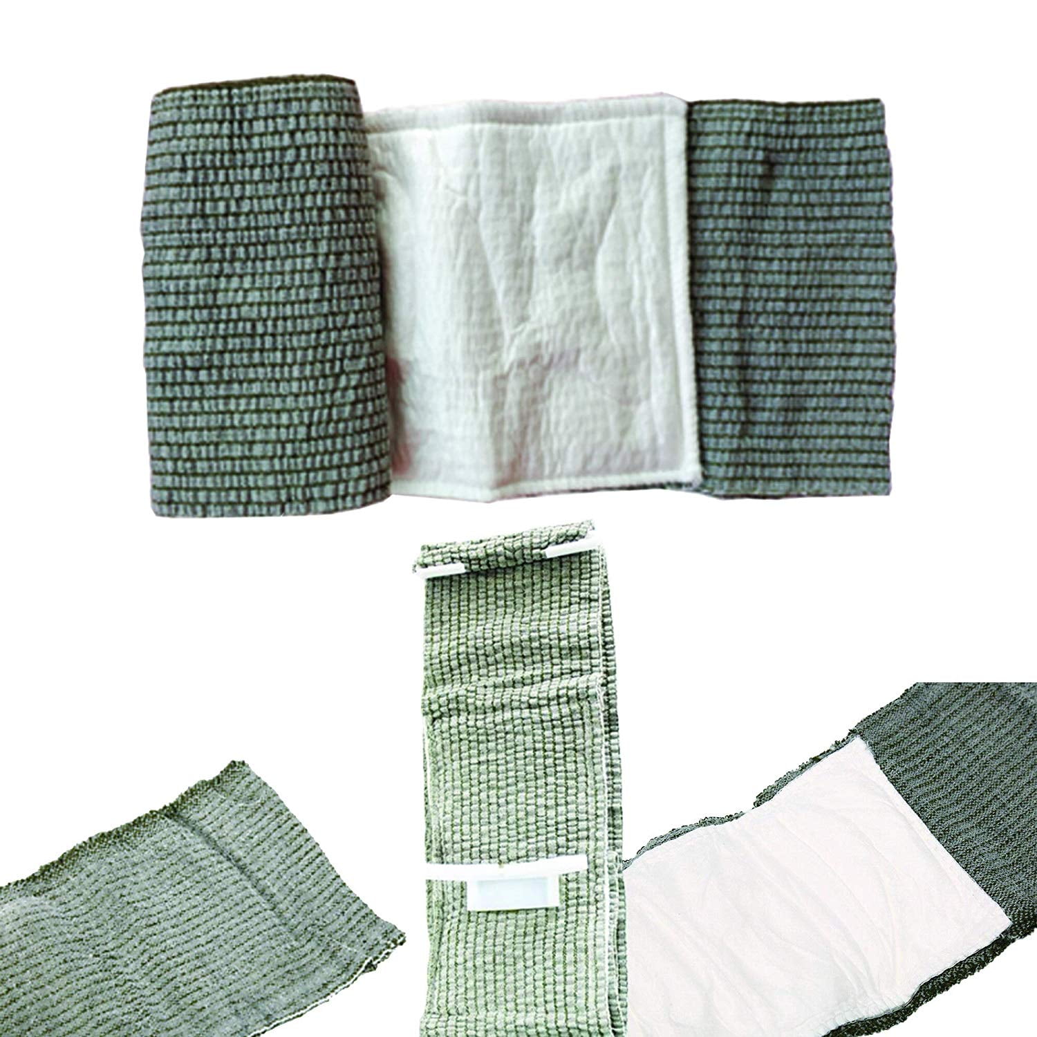 Vacuum sterile sealed package, compact and portable, FDA approved6 inches wide and 70 inches long, 3-layer dressing pad, for hemorrhagic injuryThis Bandage far exceeds the design of a general first aid bandage, integrated disinfection gauze, fast hemostatic bandage, pressure-integrated device, equivalent to a small emergency system. It is widely used by the military, first responders, EMS, law enforcement, commercial and industrial sites, and first aid kits.Can be used on the head, legs, arms, torso, or anywhere else on the bodyYou can even use this bandage as rings, splints, and a simple tourniquet in an emergency.The Emergency Trauma Bandage is designed for a fast response to severe bleeding. This all-in-one device includes a thick non-adherent dressing, elastic bandage, pressure applicator and closure kit in one simple, sterile unit. This gives you an effective wound dressing that is quick and easy to apply without the need for tape, safety pins or other bandages. Instructions for use: Apply dressing pad to wound and wrap plastic bandage around limb. Slip elastic bandage through V-notch of pressure applicator. Draw bandage through pressure applicator to tighten firmly. Fold bandage back over applicator to apply pressure to wound. Wrap bandage over pressure applicator, overlapping pad edges. Secure bandage in place with closure clip at end of bandage. Store in a cool, dry place, out of direct sunlight.2 Pieces Trauma Bandage 6" Emergency Military Style Battle Wound Dressing First Aid