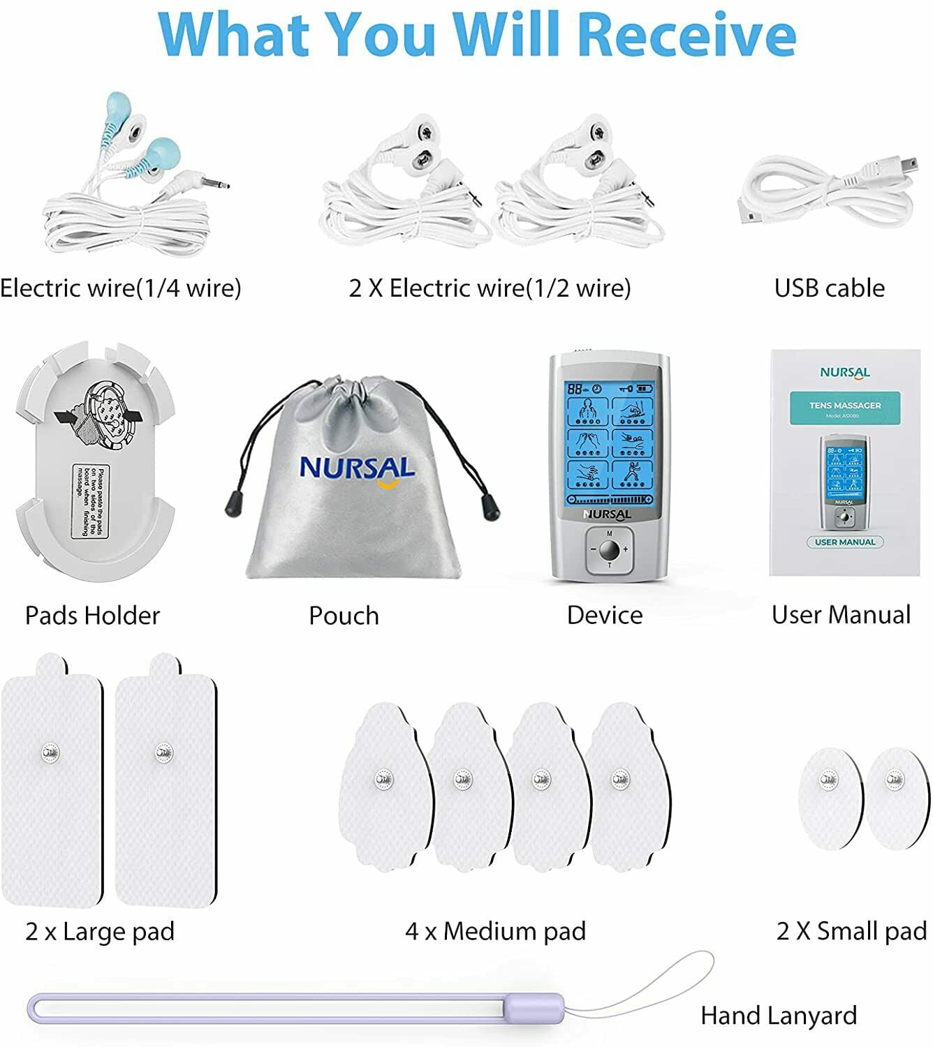 NURSAL TENS Unit Muscle Stimulator W8 Pads 24 Modes Pain Relief Therapy Massager