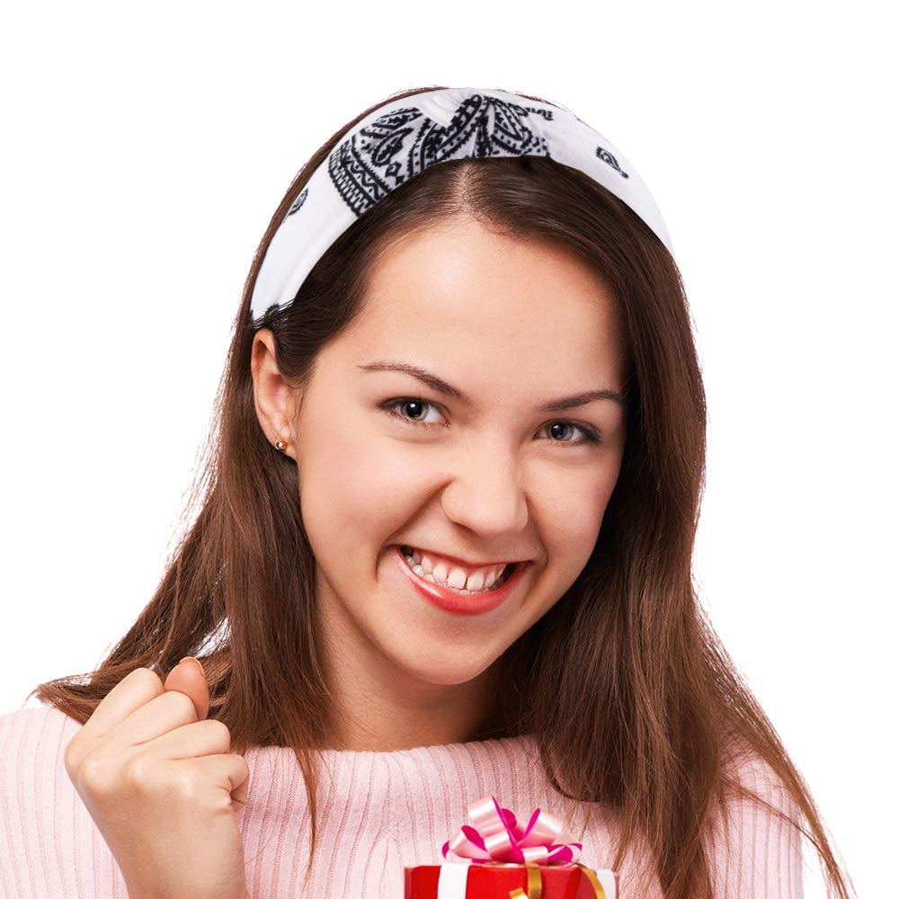 6 Pieces Top Knot Headband Paisley Boho Headbands Vintage Cross Knotted Headbands Twisted Knot Head Band Wide Hairband for Women and Girls